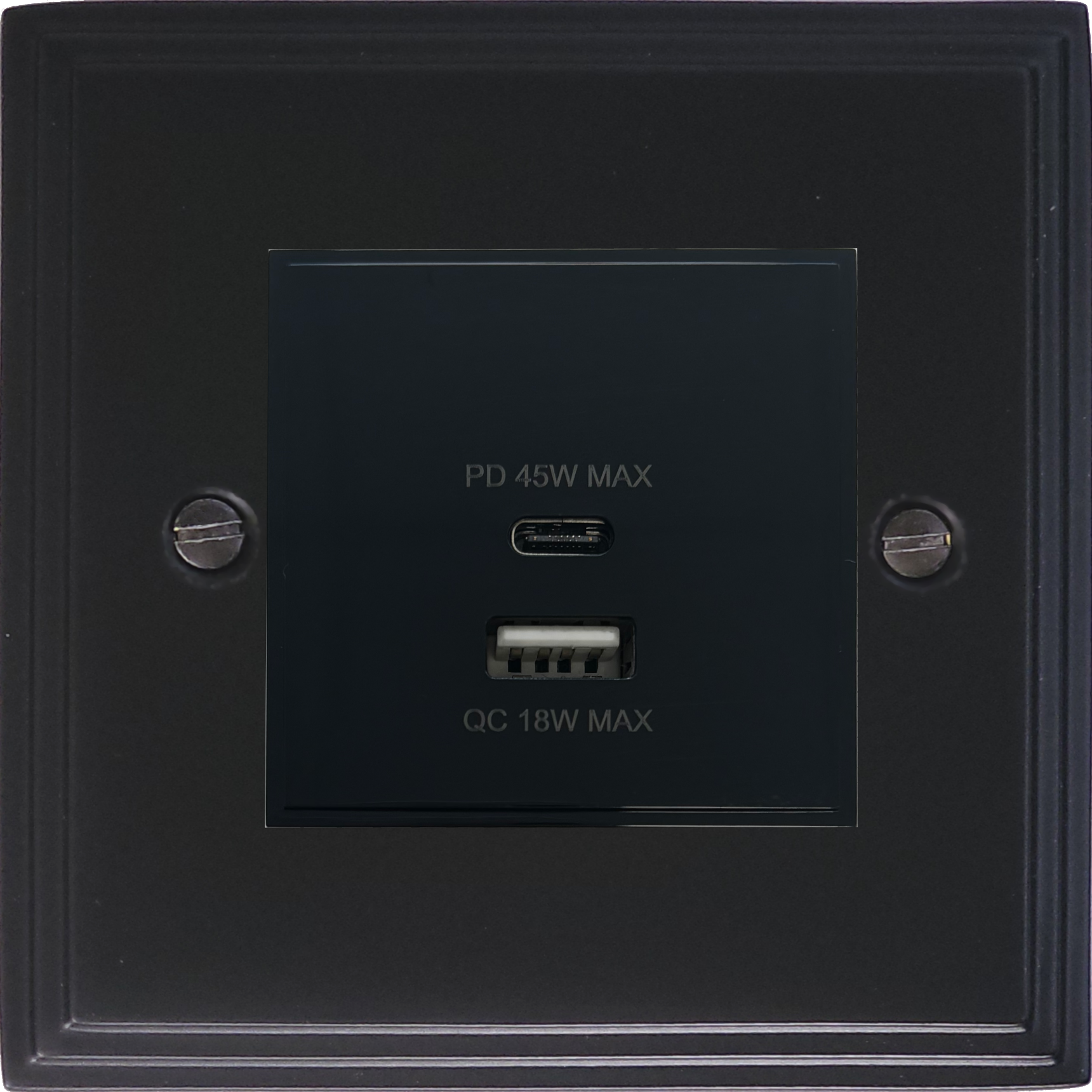 Victorian Matt Black USB Charger (Dual USB A + C Quick Charge) (1 Gang) - G+H VFB43B