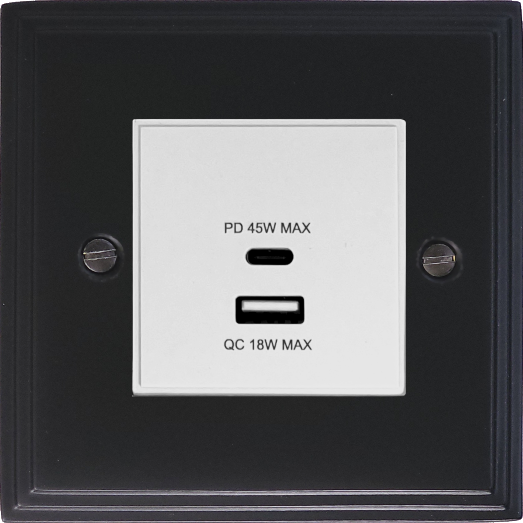 Victorian Matt Black USB Charger (Dual USB A + C Quick Charge) (1 Gang/White Insert)