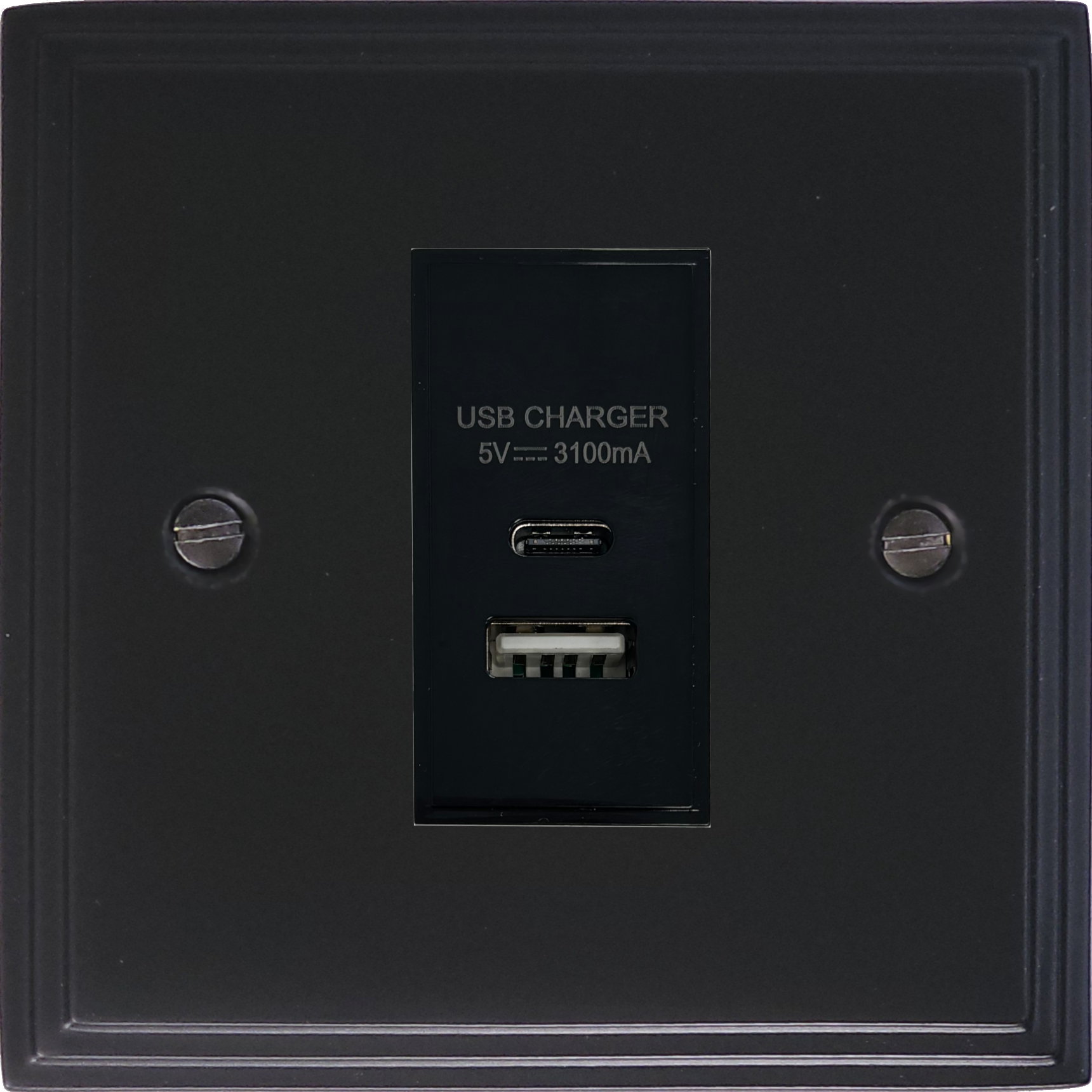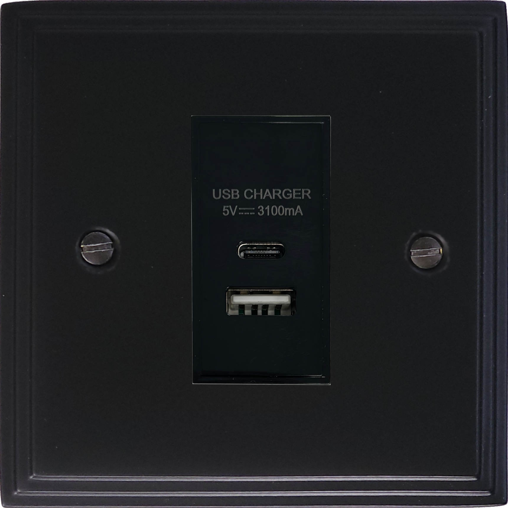 Victorian Matt Black USB Charger (USB-A and USB-C) (1 Gang) - G+H VFB41B