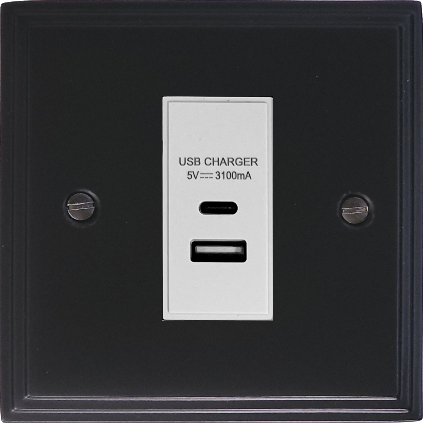 Victorian Matt Black USB Charger (USB-A and USB-C) (1 Gang/White Insert) - G+H VFB41W