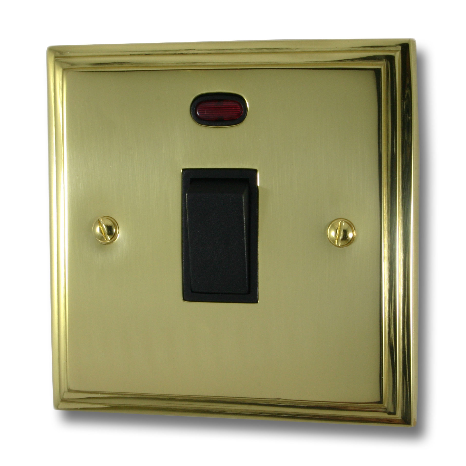 Victorian Polished Brass 20A DP Switch with Neon (Black Switch) - G+H VB26B