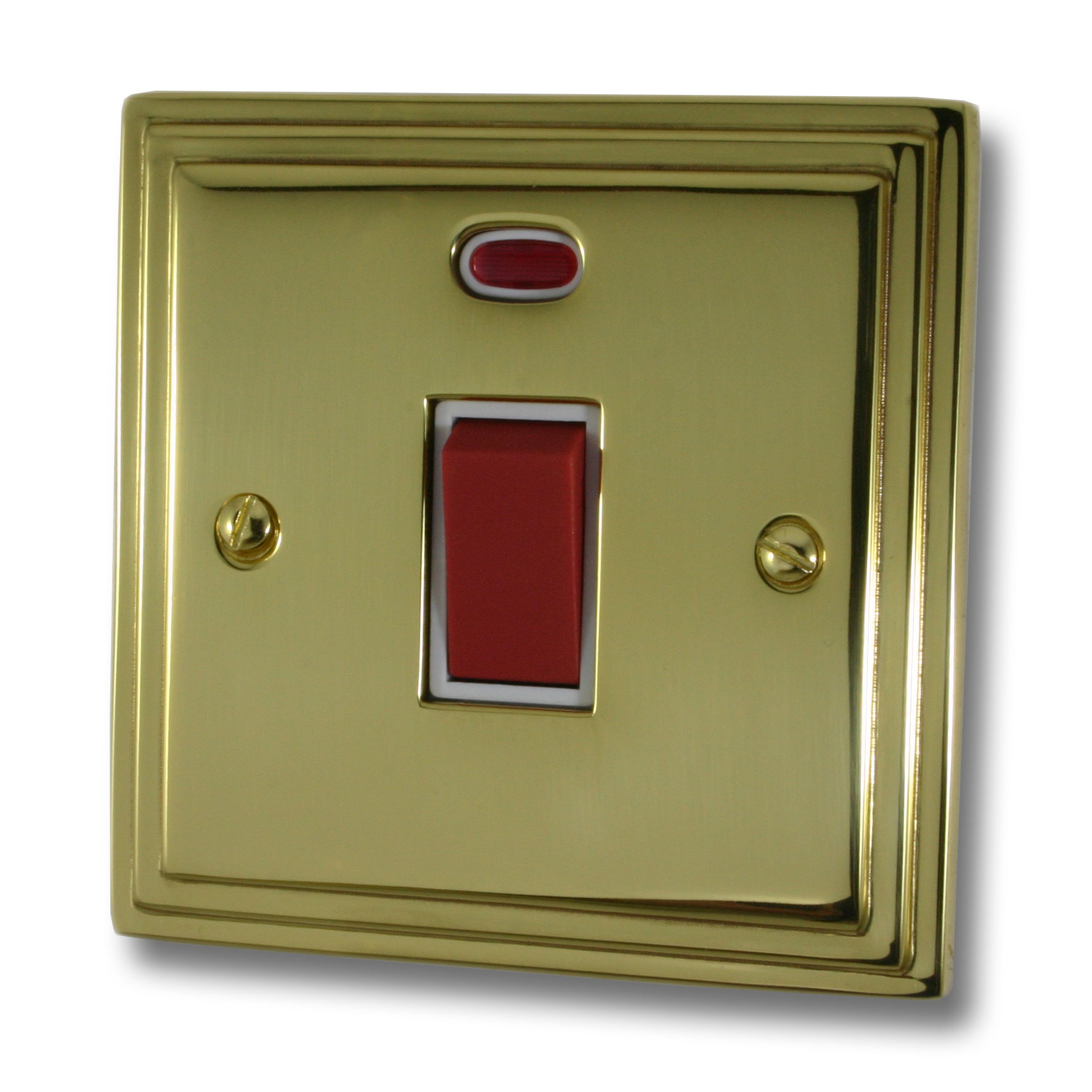 Victorian Polished Brass 45A DP Switch with Neon (White Insert) - G+H VB46W
