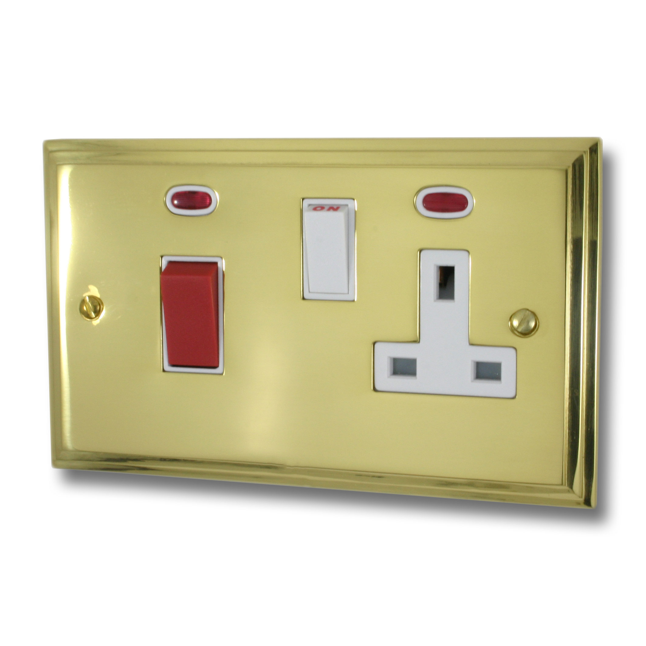 Victorian Polished Brass Cooker Switch with Socket (White Switch) - G+H VB29W