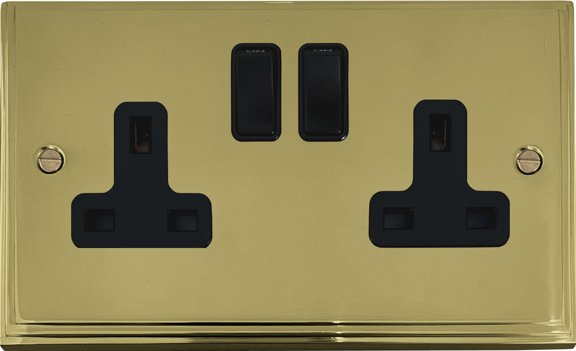 Victorian Polished Brass Double Socket (Black Switches) - G+H VB10B