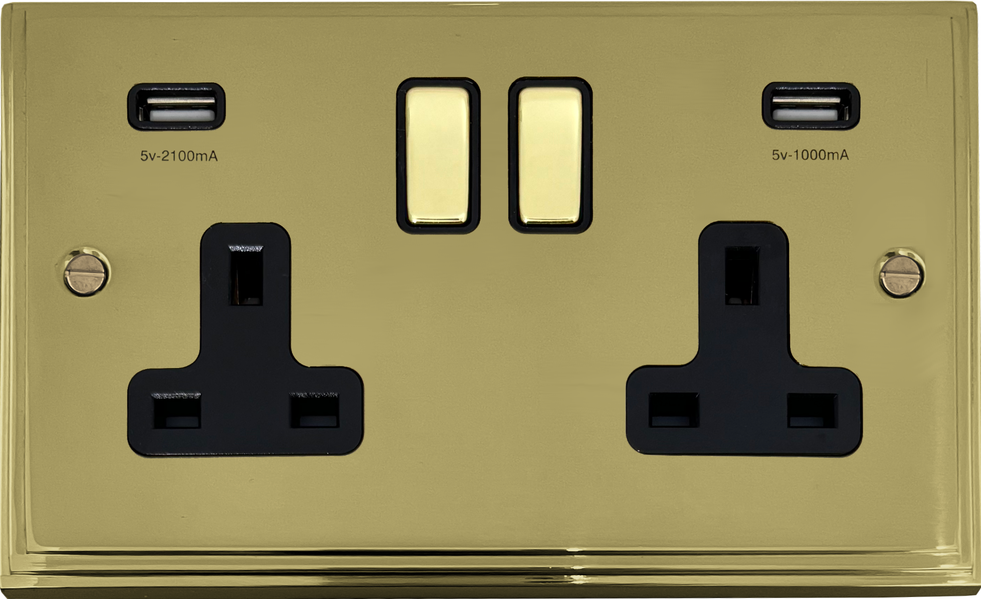 Victorian Polished Brass Double Socket with USB - G+H VB3910
