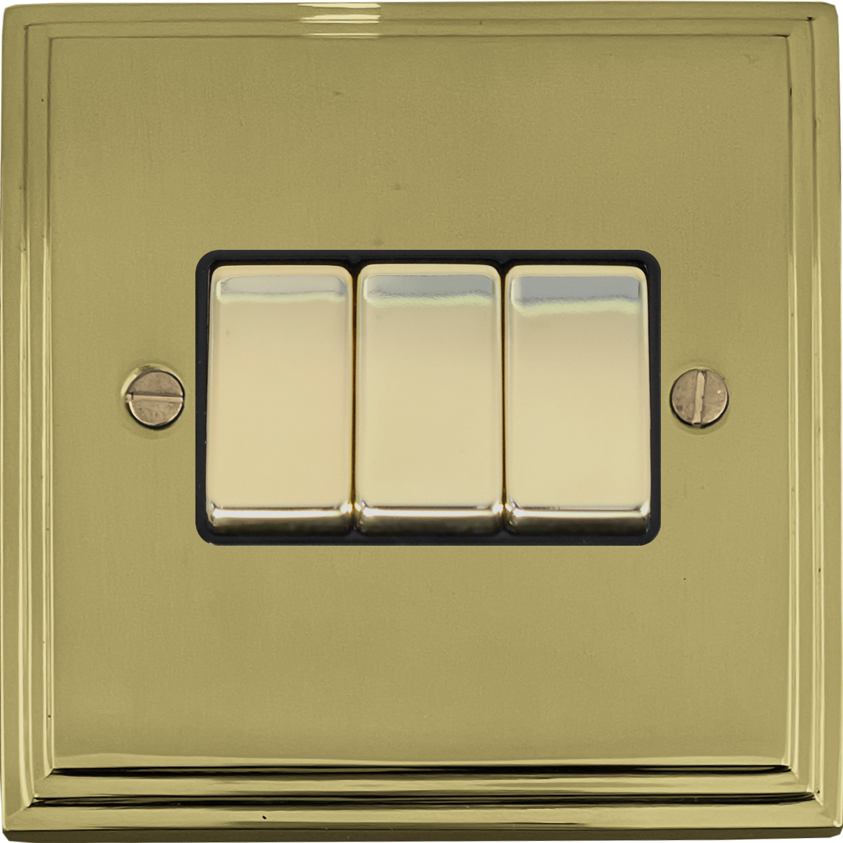 Victorian Polished Brass Light Switch (3 Gang) - G+H VB303