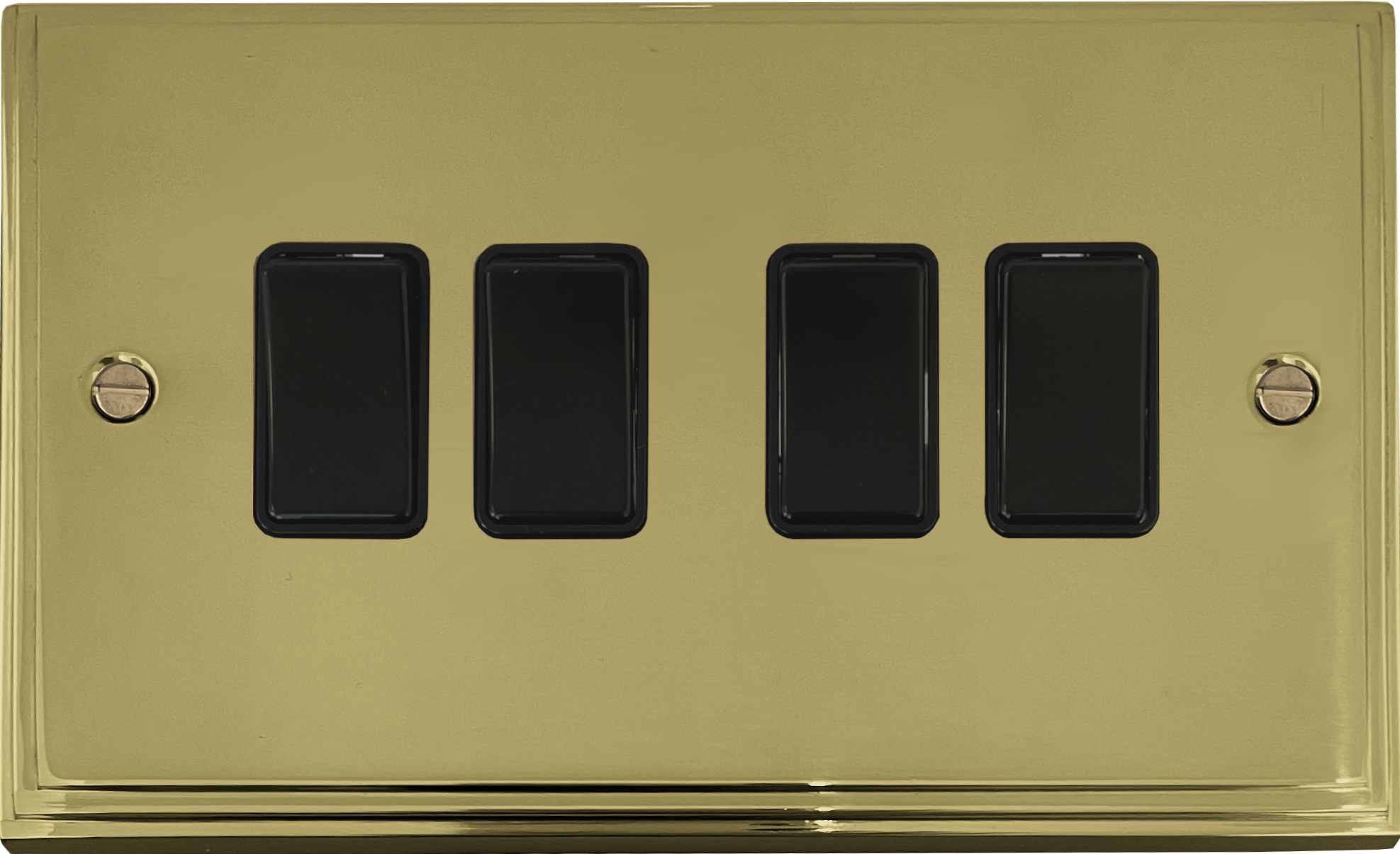 Victorian Polished Brass Light Switch (4 Gang/Black Switches) - G+H VB4B