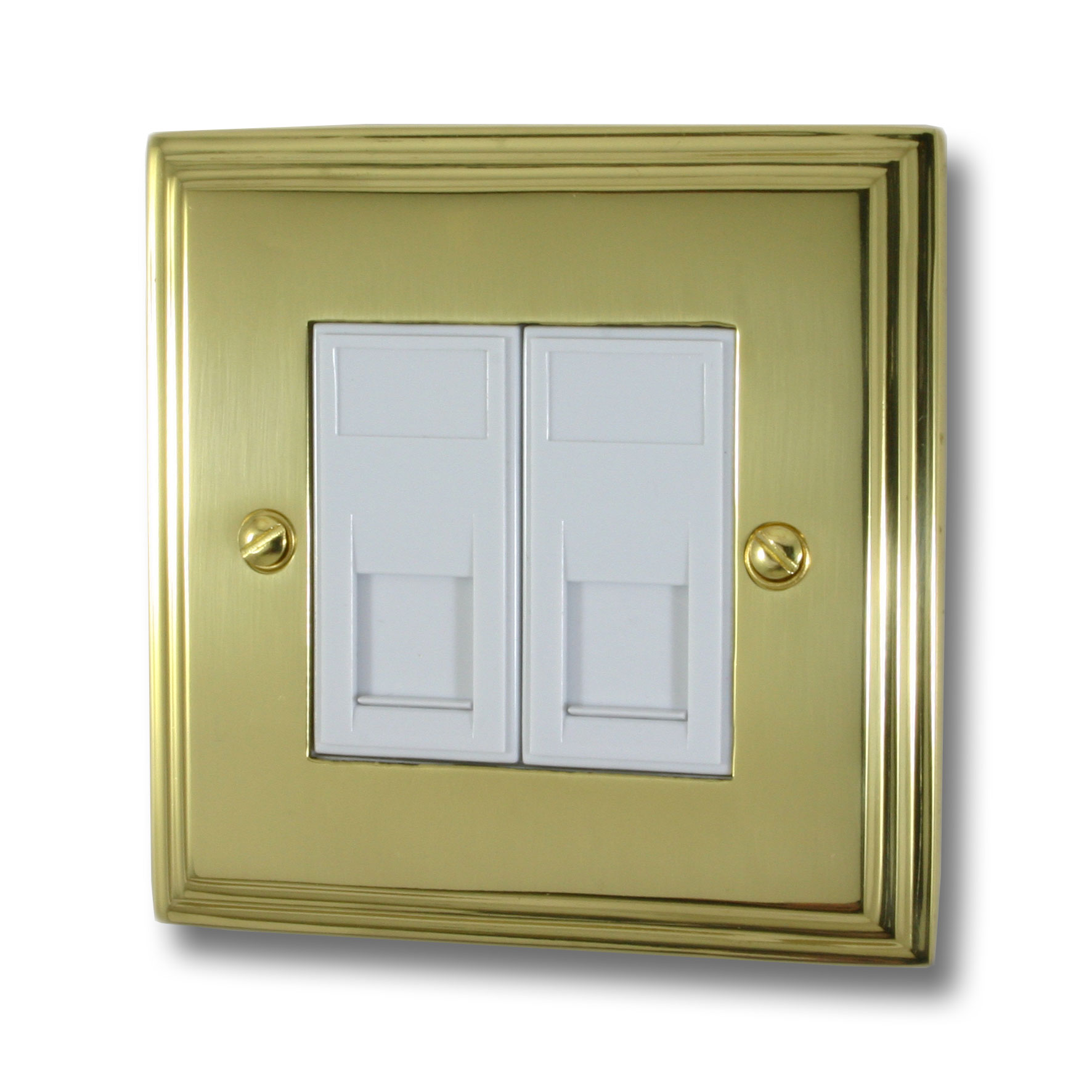 Victorian Polished Brass RJ45 Socket (2 Gang/White Insert) - G+H VB62W