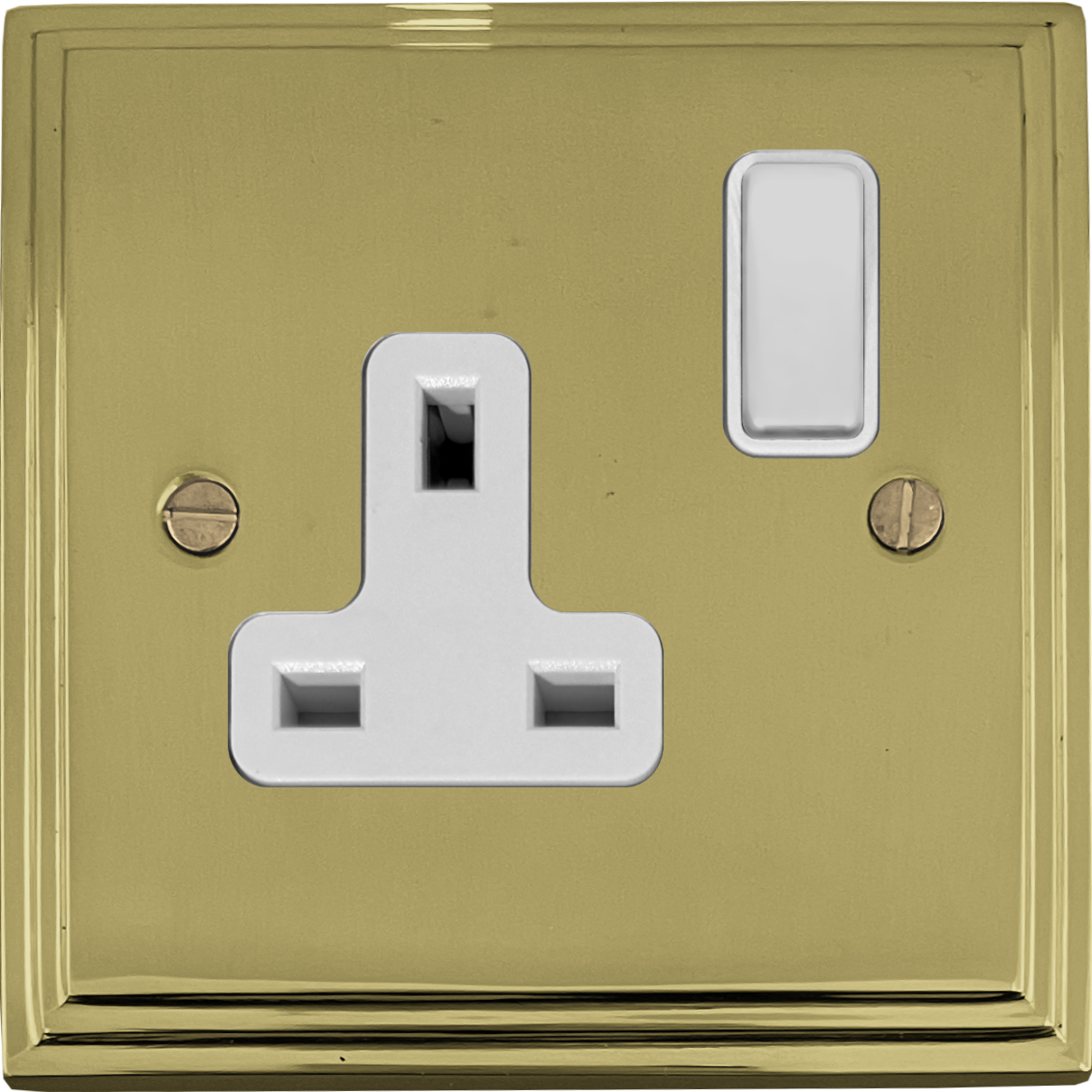 Victorian Polished Brass Single Socket (White Switch) - G+H VB9W