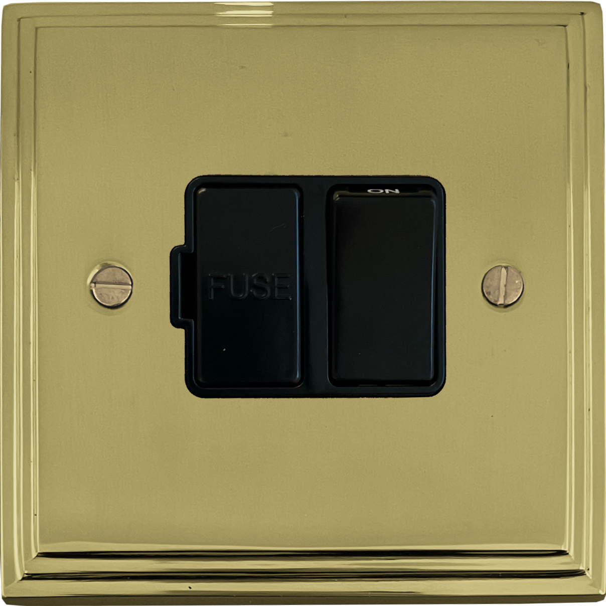 Victorian Polished Brass Switched Fused Spur (Black Switch) - G+H VB57B