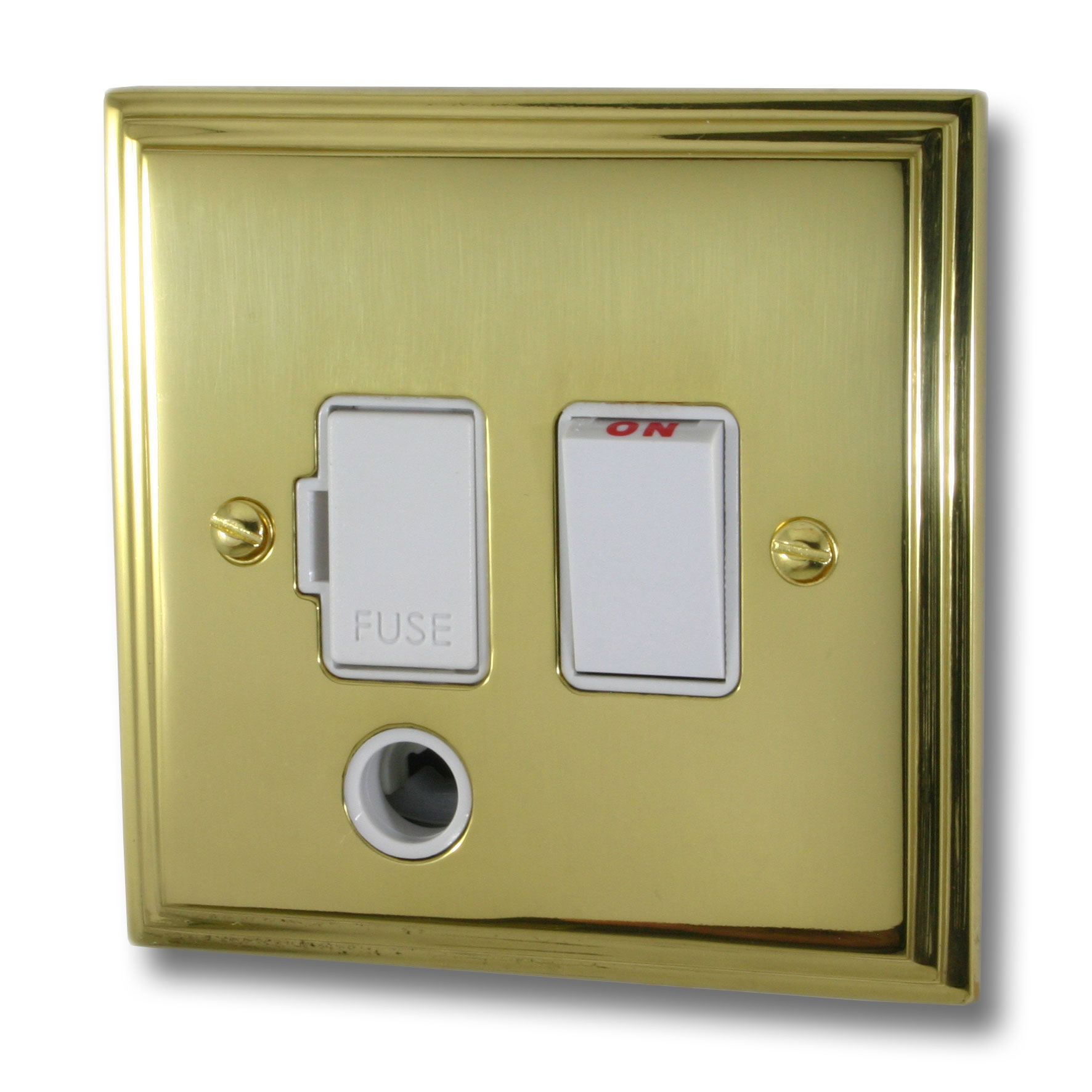 Victorian Polished Brass Switched Fused Spur with Flex Outlet (White Switch) - G+H VB56W