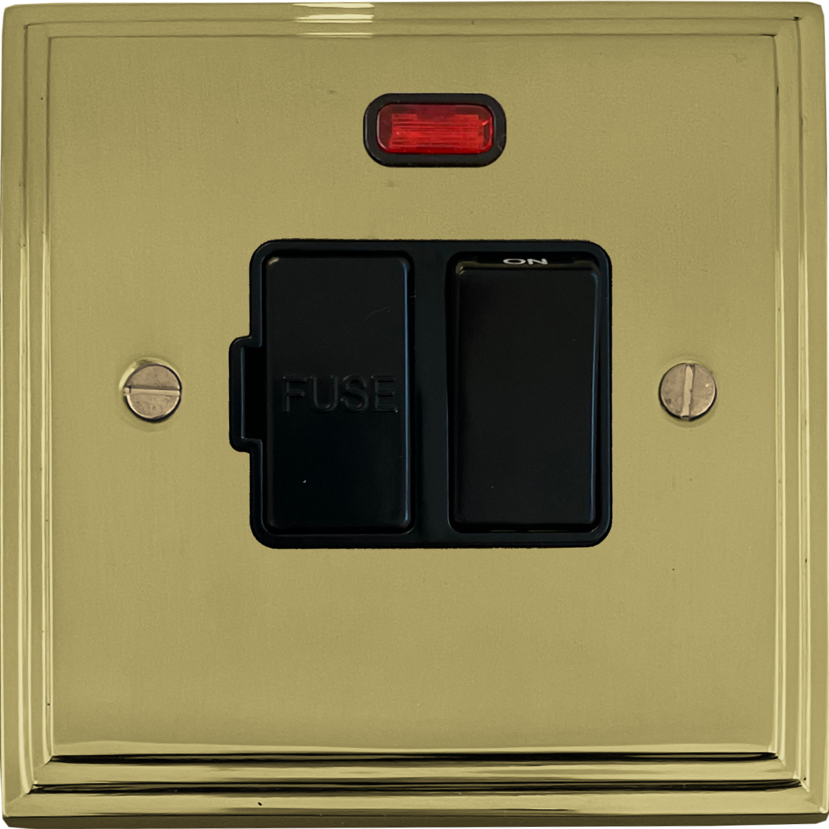 Victorian Polished Brass Switched Fused Spur with Neon (Black Switch) - G+H VB27B