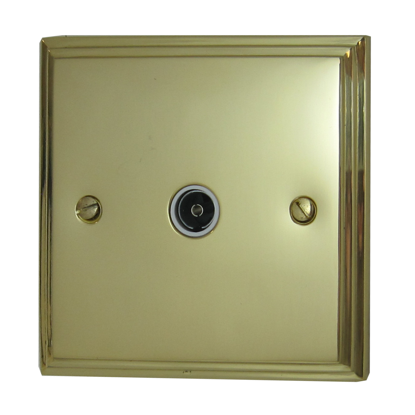 Victorian Polished Brass TV Socket (White Insert) - G+H VB35W