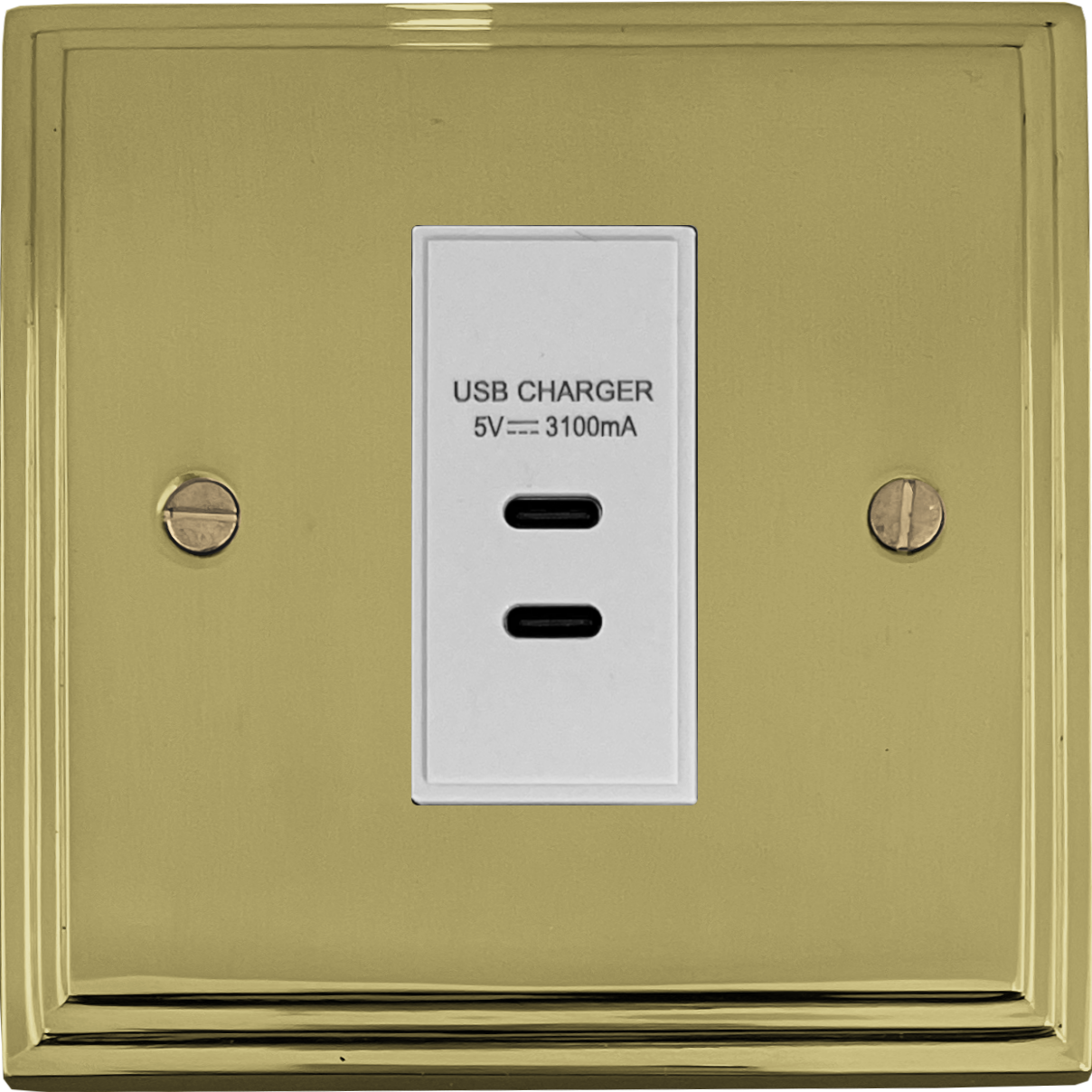 Victorian Polished Brass USB Charger (2x USB-C) (1 Gang/White Insert) - G+H VB42W