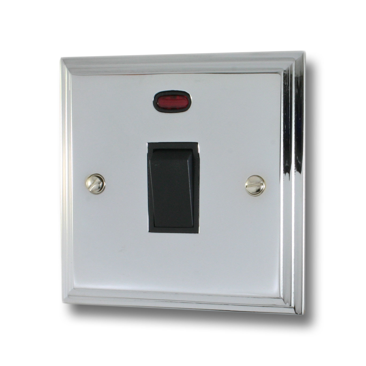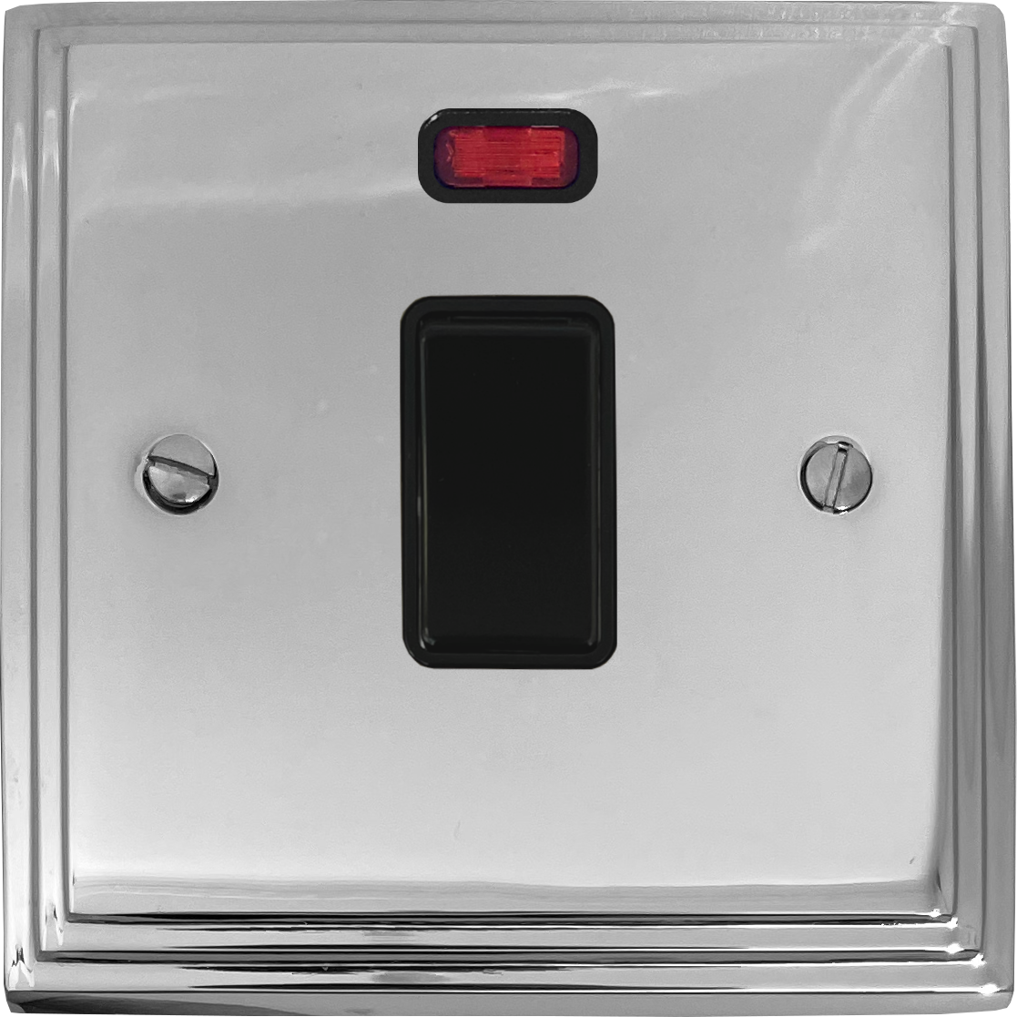 Victorian Polished Chrome 20A DP Switch with Neon (Black Switch) - G+H VC26B