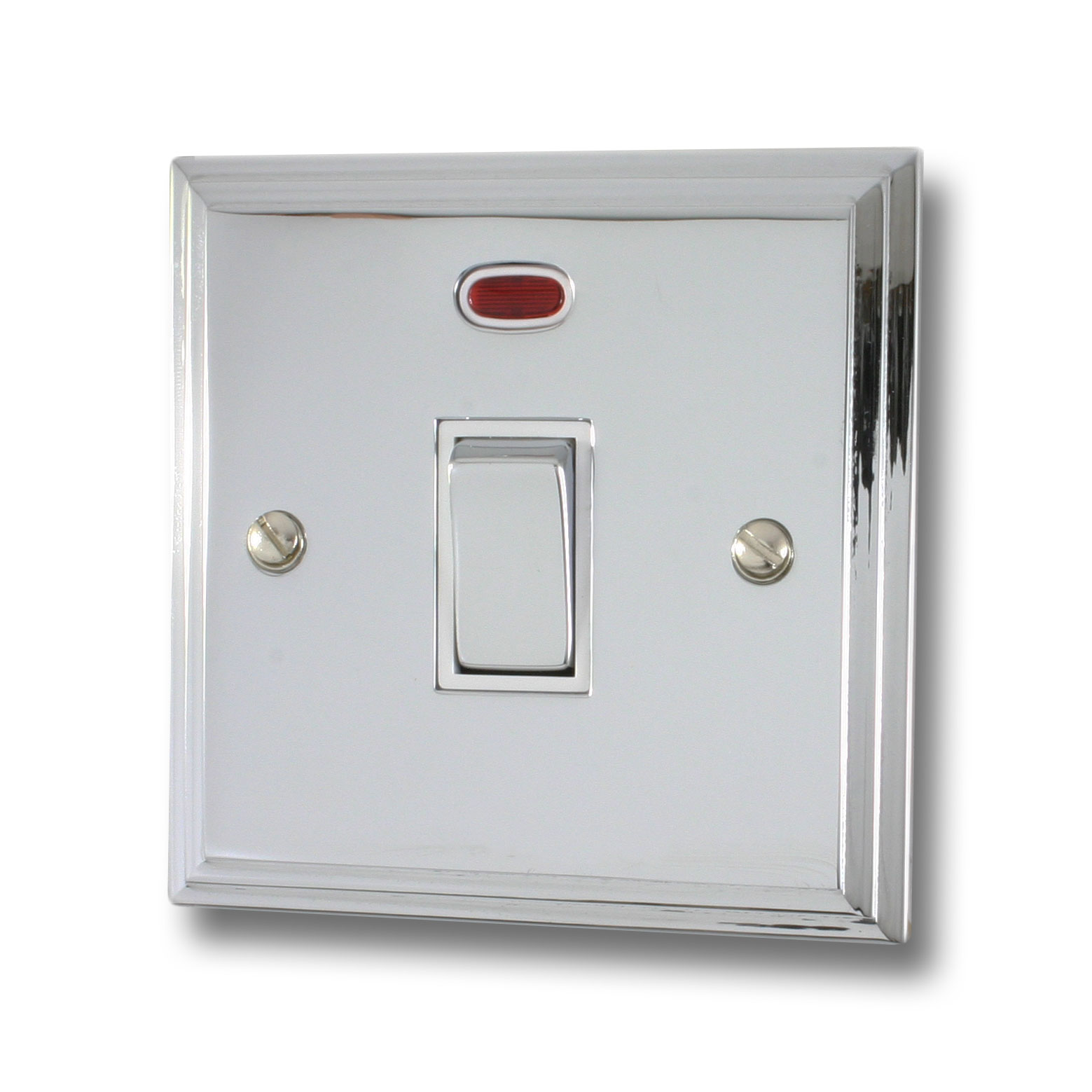 Victorian Polished Chrome 20A DP Switch with Neon (White Insert/Chrome Switch) - G+H VC226