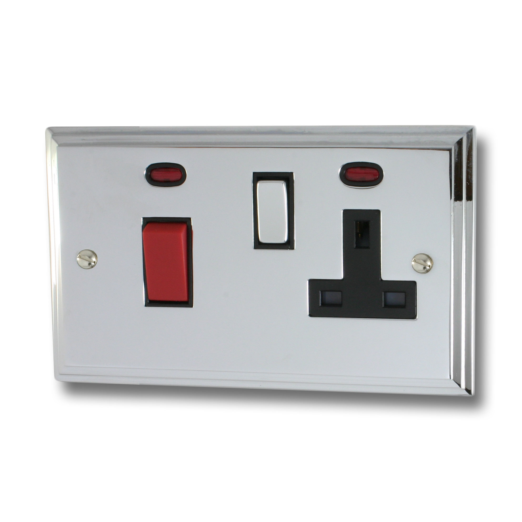 Victorian Polished Chrome Cooker Switch with Socket (Black Insert/Chrome Switch) - G+H VC329