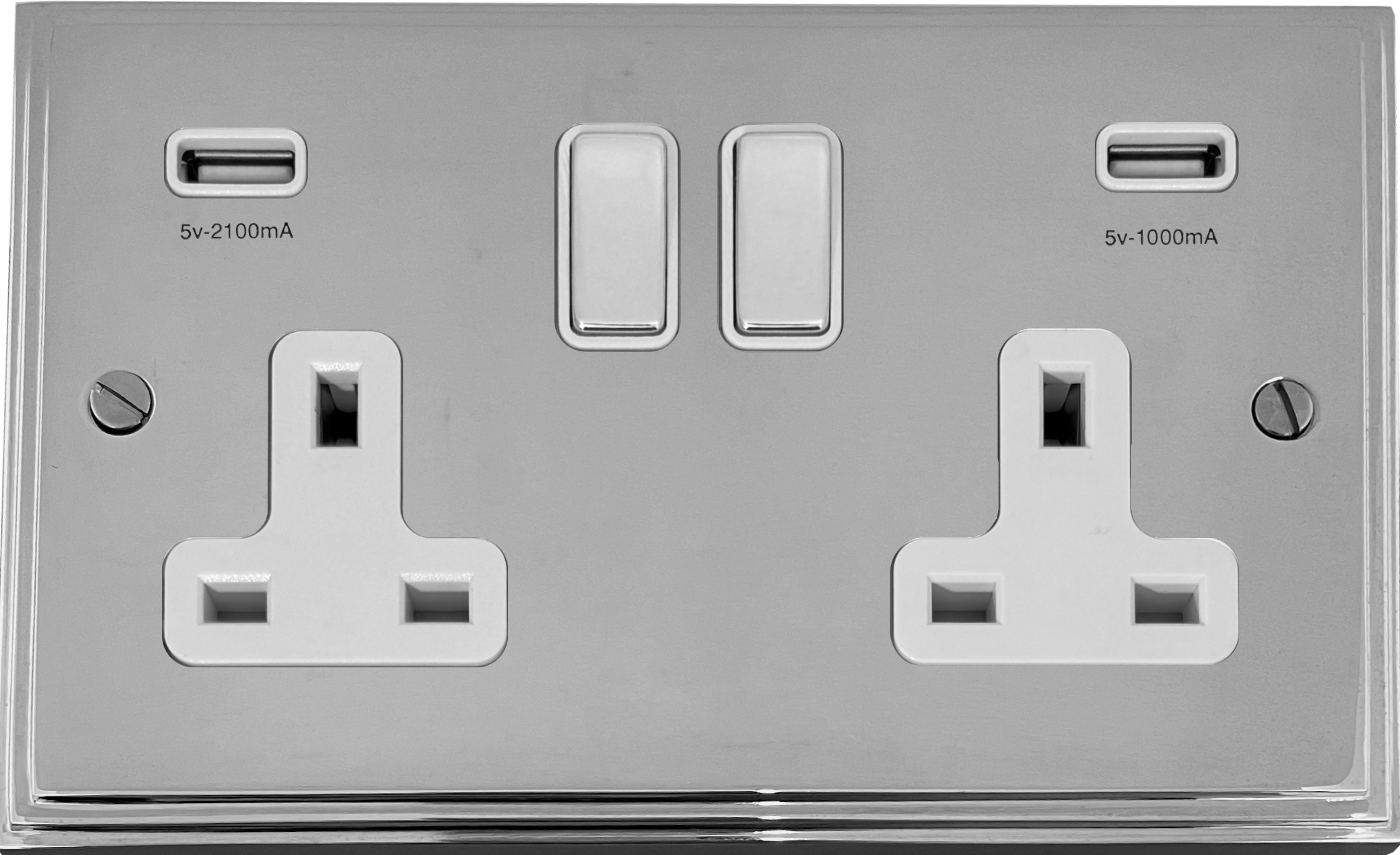 Victorian Polished Chrome Double Socket with USB (Chrome Switches/White Inserts) - G+H VC2910