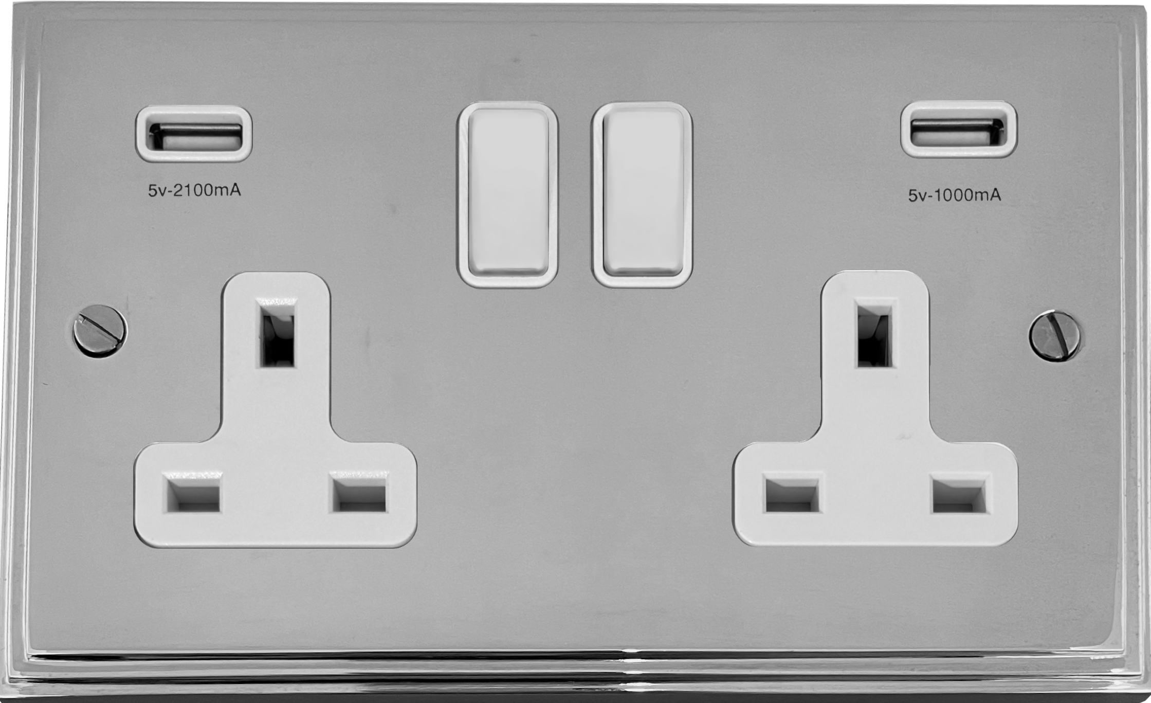 Victorian Polished Chrome Double Socket with USB (White Switches) - G+H VC910W