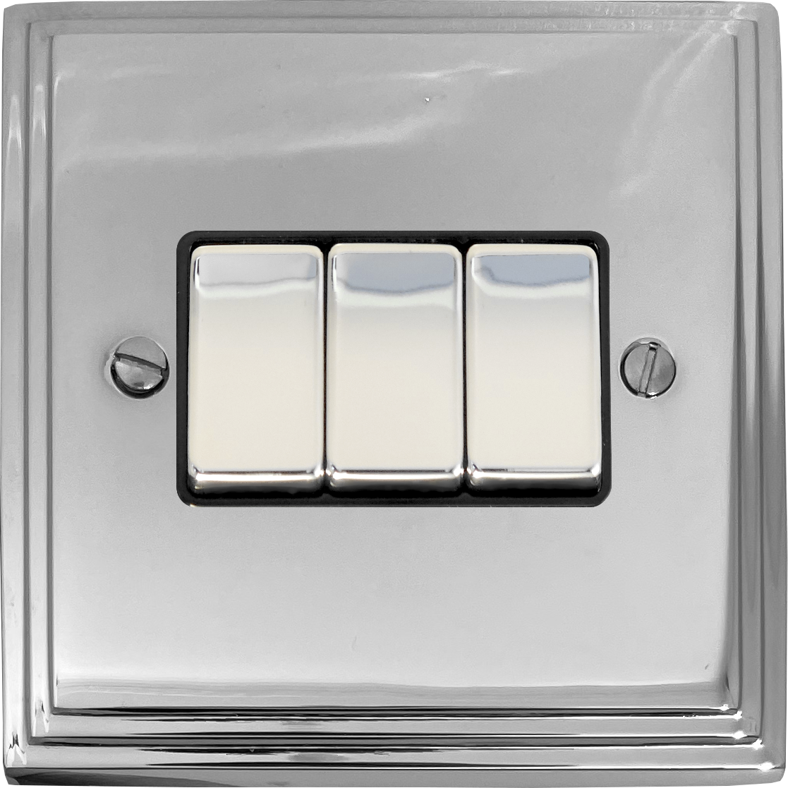 Victorian Polished Chrome Light Switch (3 Gang/Black Insert/Chrome Switches) - G+H VC303