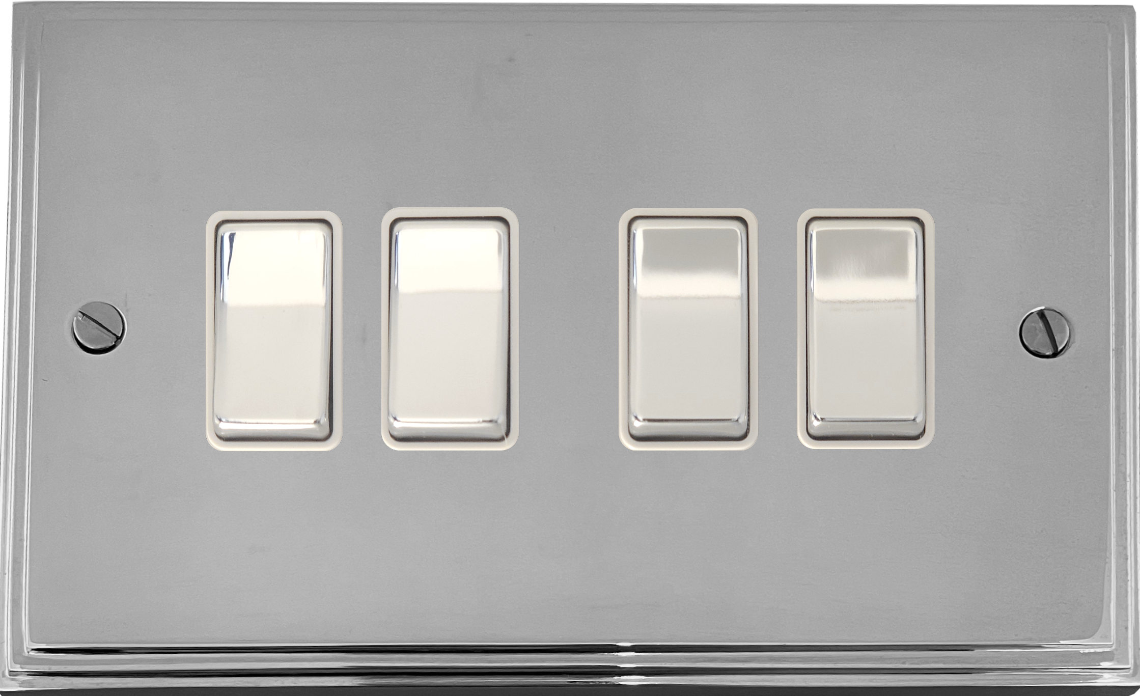 Victorian Polished Chrome Light Switch (4 Gang/White Insert/Chrome Switches) - G+H VC204