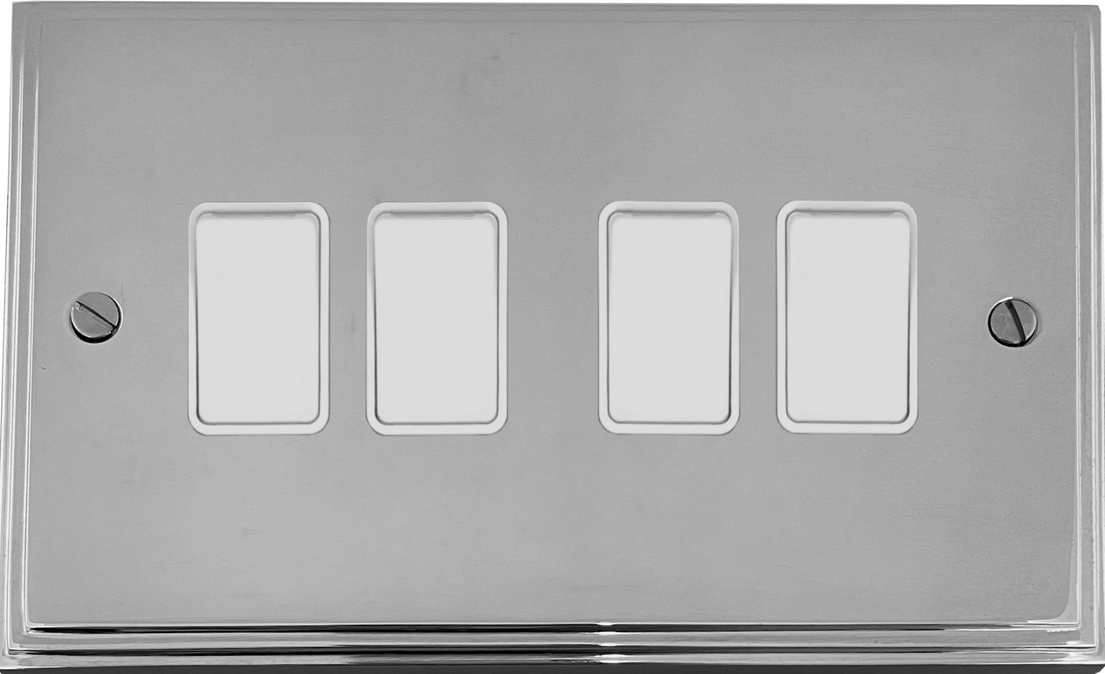 Victorian Polished Chrome Light Switch (4 Gang/White Switch) - G+H VC4W