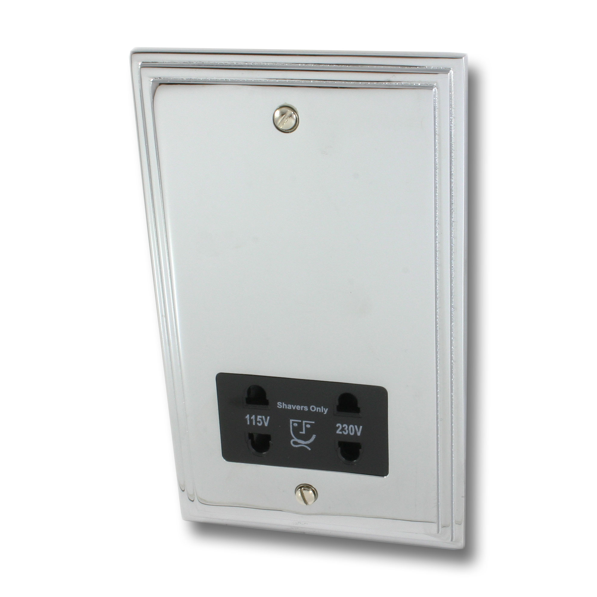 Victorian Polished Chrome Shaver Socket (Black Insert) - G+H VC30B
