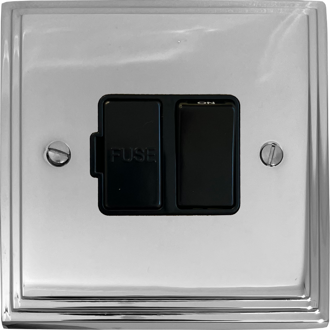 Victorian Polished Chrome Switched Fused Spur (Black Switch) - G+H VC57B