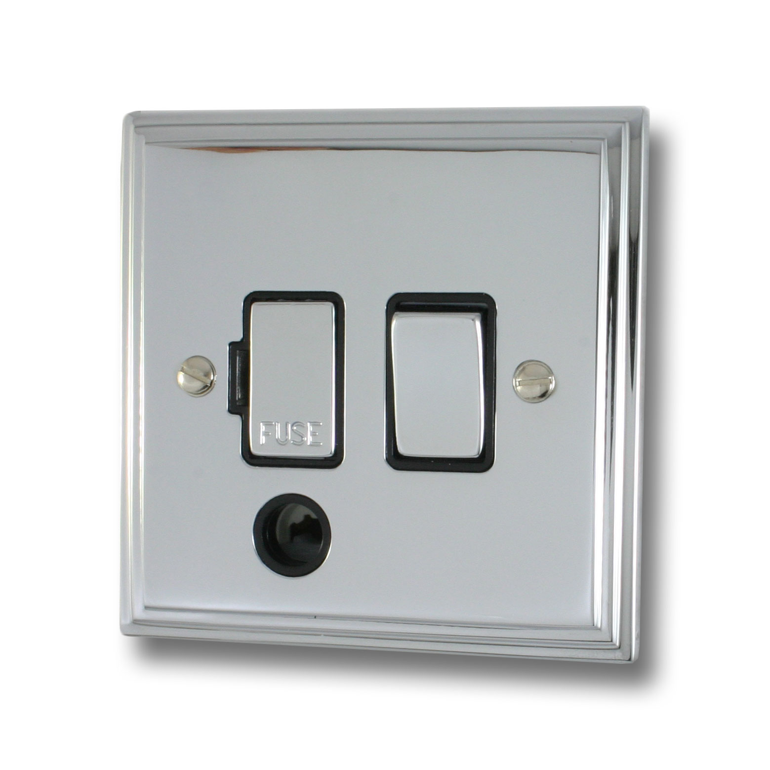 Victorian Polished Chrome Switched Fused Spur with Flex Outlet (Black Insert/Chrome Switch) - G+H VC356