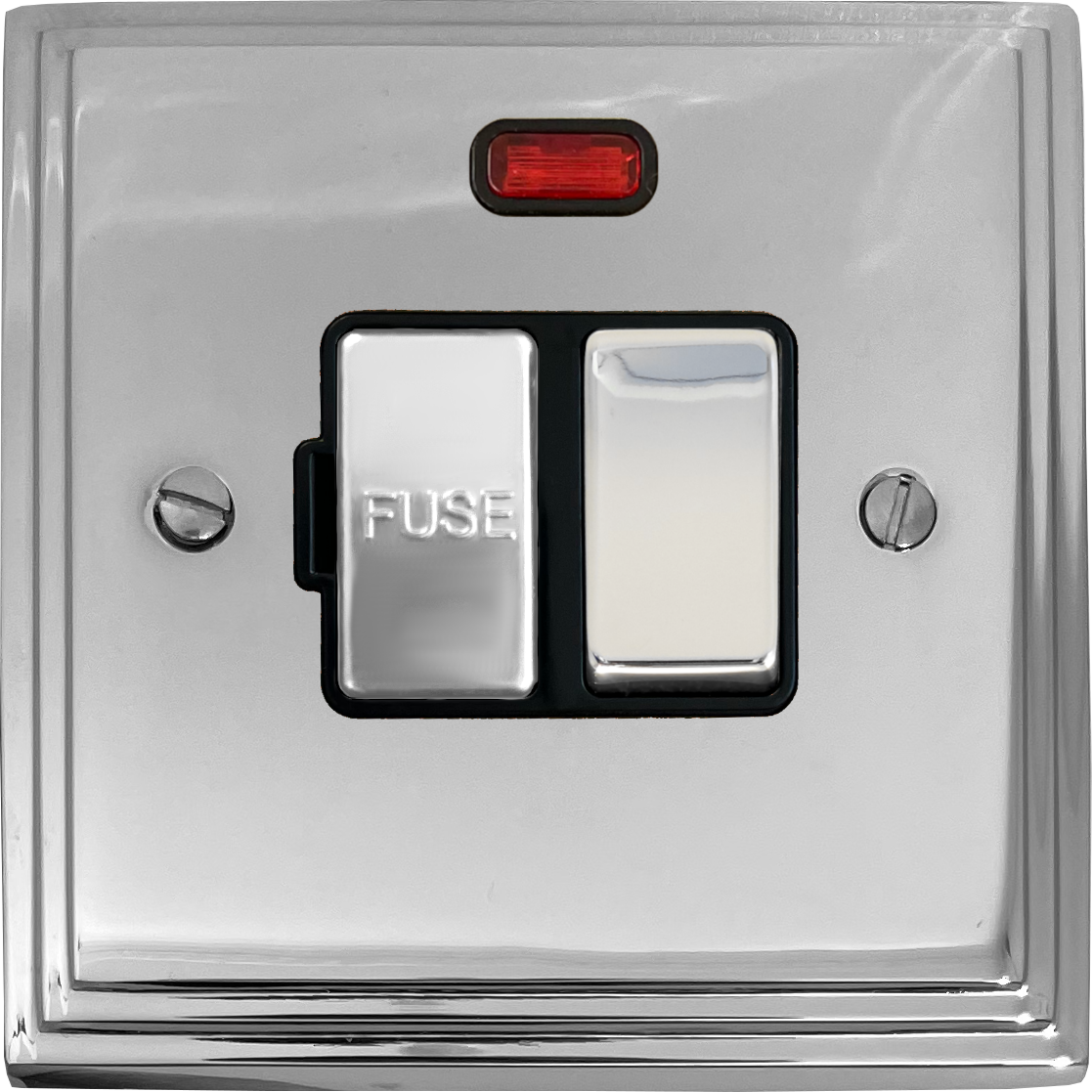 Victorian Polished Chrome Switched Fused Spur with Neon (Black Insert/Chrome Switch) - G+H VC327