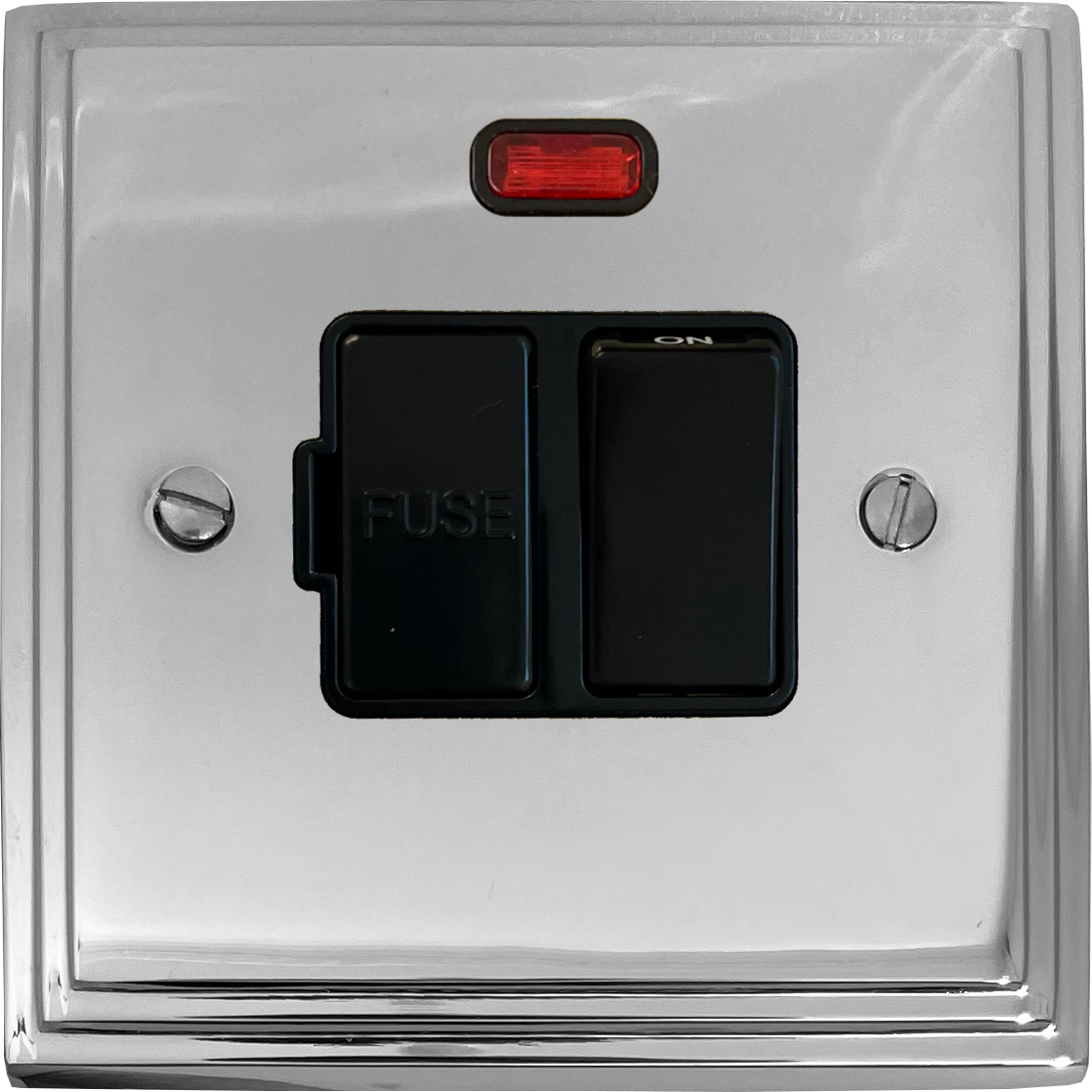Victorian Polished Chrome Switched Fused Spur with Neon (Black Switch) - G+H VC27B