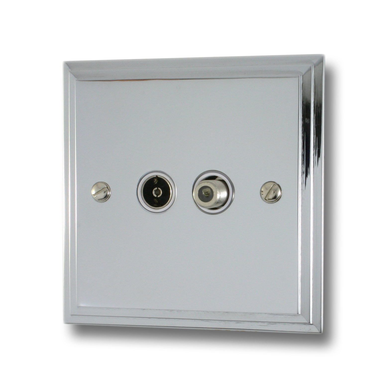 Victorian Polished Chrome TV/Satellite Socket (White Insert) - G+H VC38W