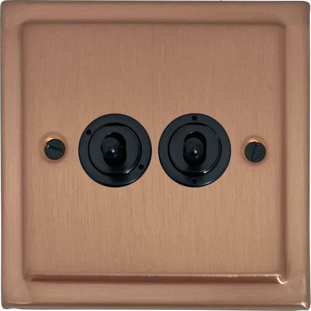 Victorian Rose Gold Toggle Switch (2 Gang/Matt Black Toggles) - G+H TRG382-FBK