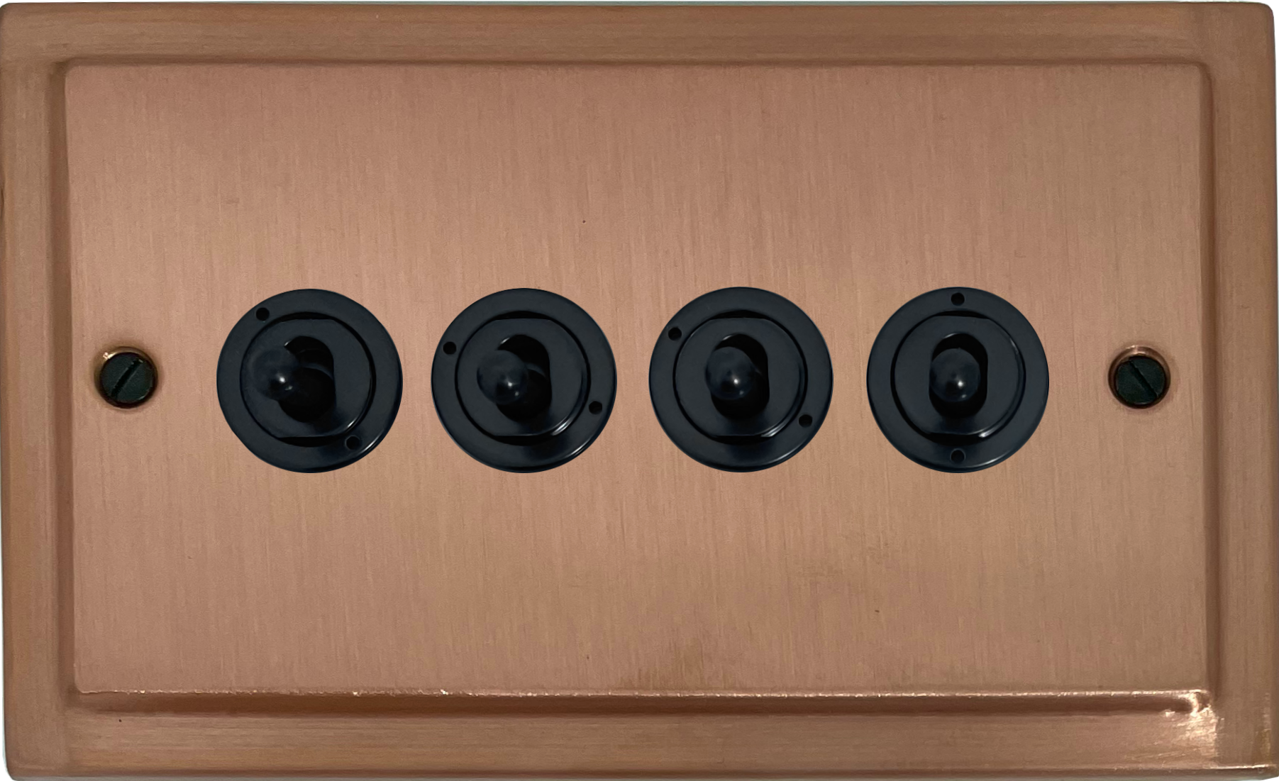 Victorian Rose Gold Toggle Switch (4 Gang/Matt Black Toggles) - G+H TRG384-FBK