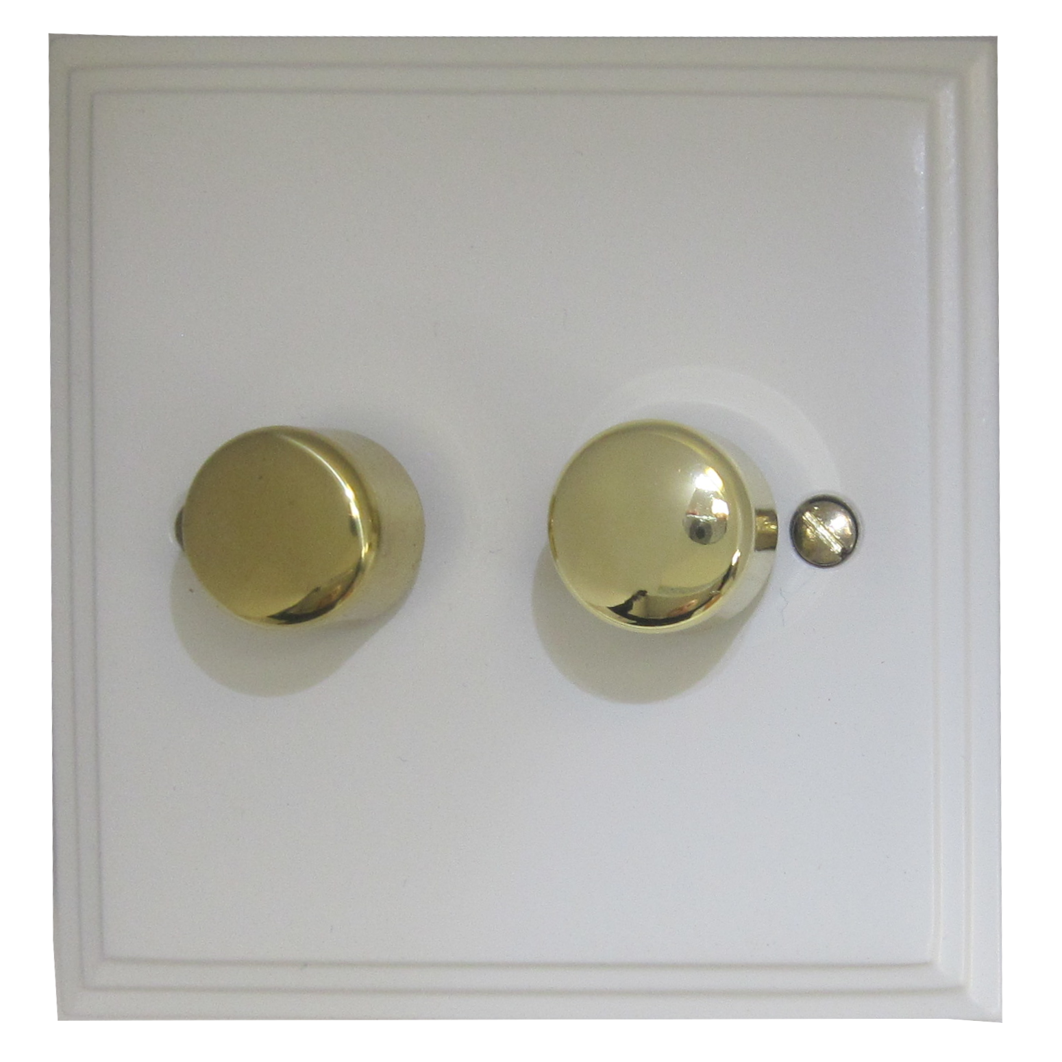 Victorian White LED Dimmer (2 Gang/Polished Brass Caps) - G+H VW522-PB