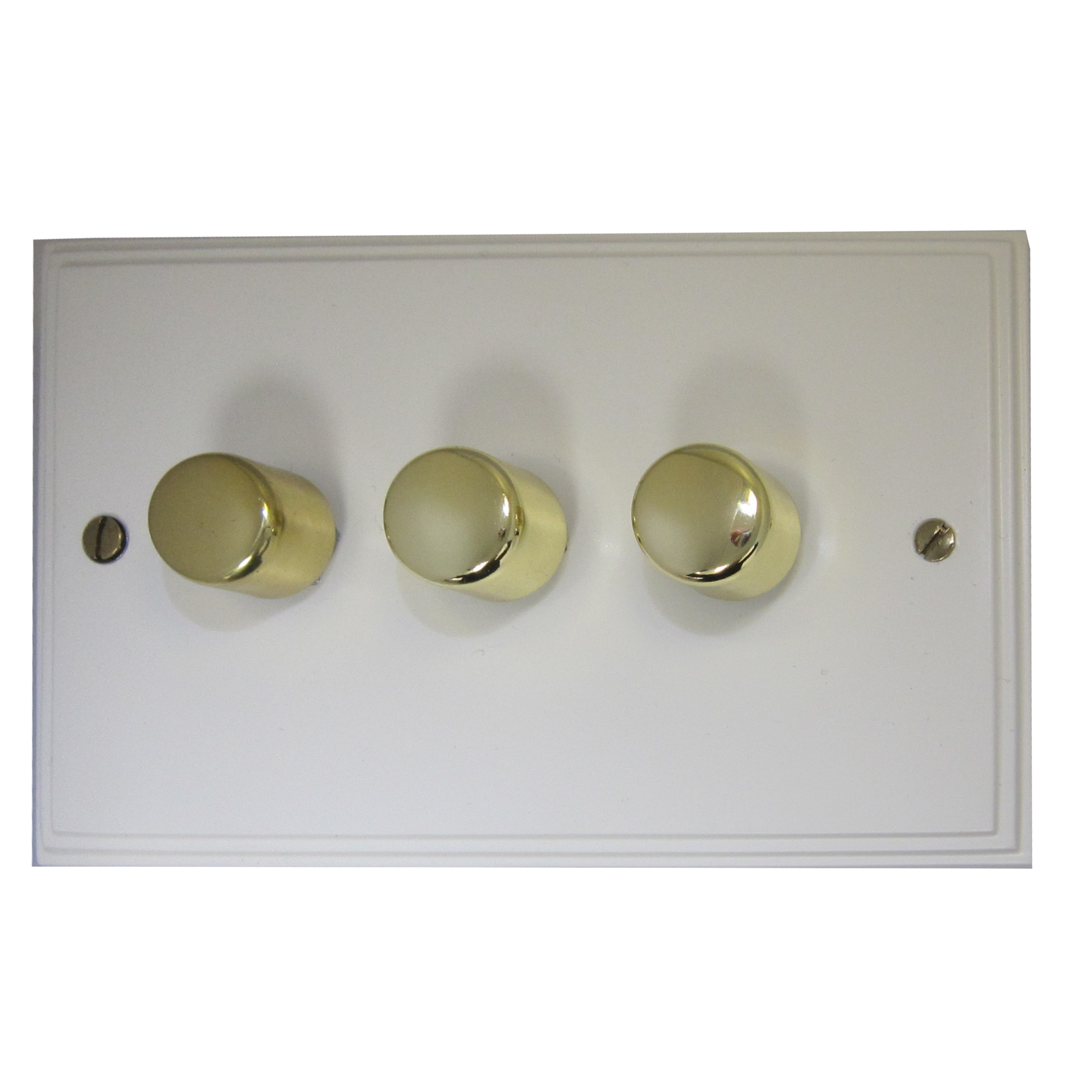 Victorian White LED Dimmer (3 Gang/Polished Brass Caps) - G+H VW523-PB