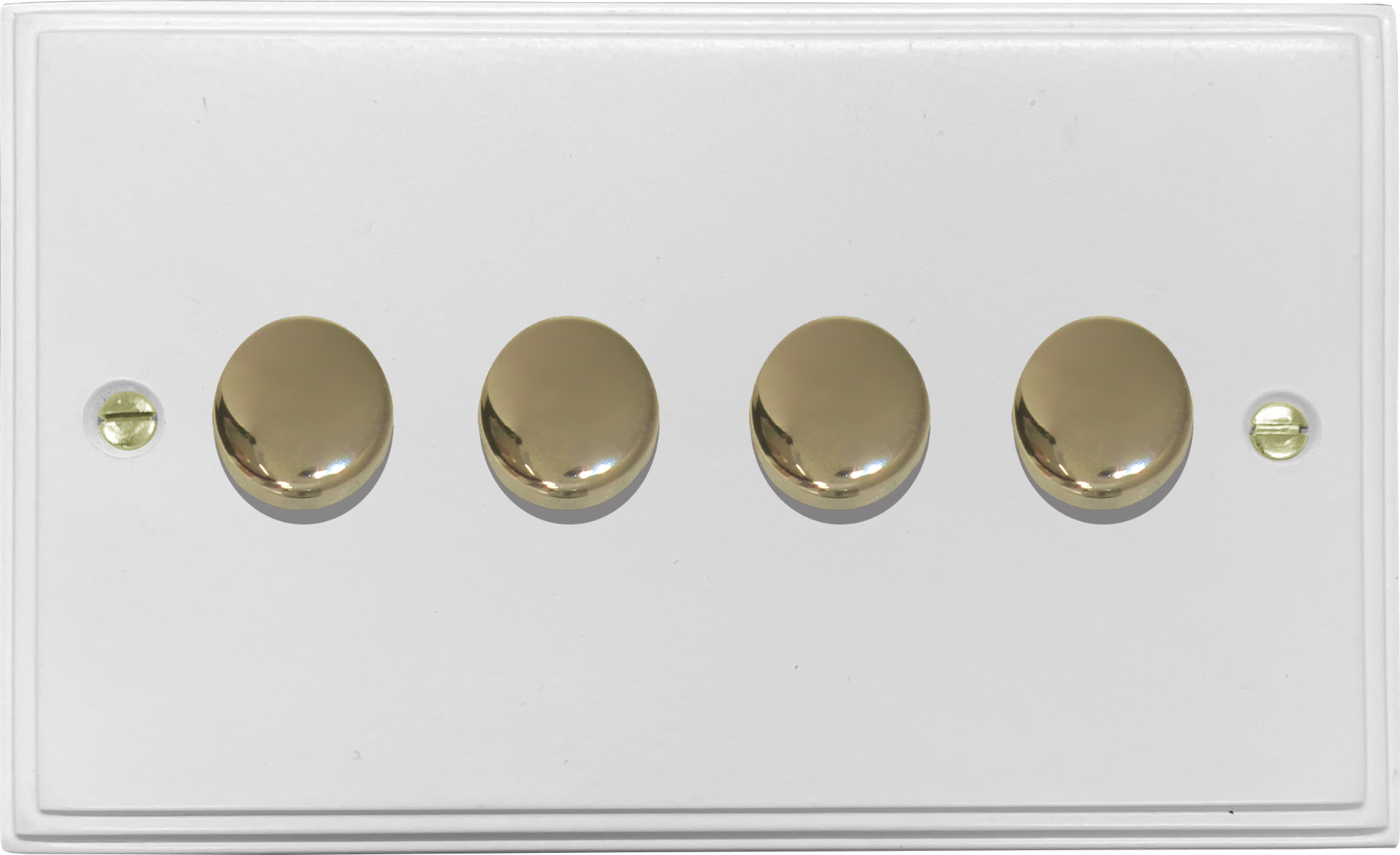 Victorian White LED Dimmer (4 Gang/Polished Brass Caps)