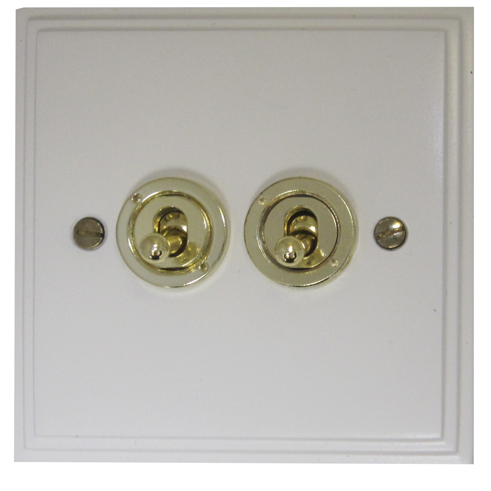 Victorian White Toggle Grid Plate (2 Gang/Polished Brass Switches) - G+H VW82-PB