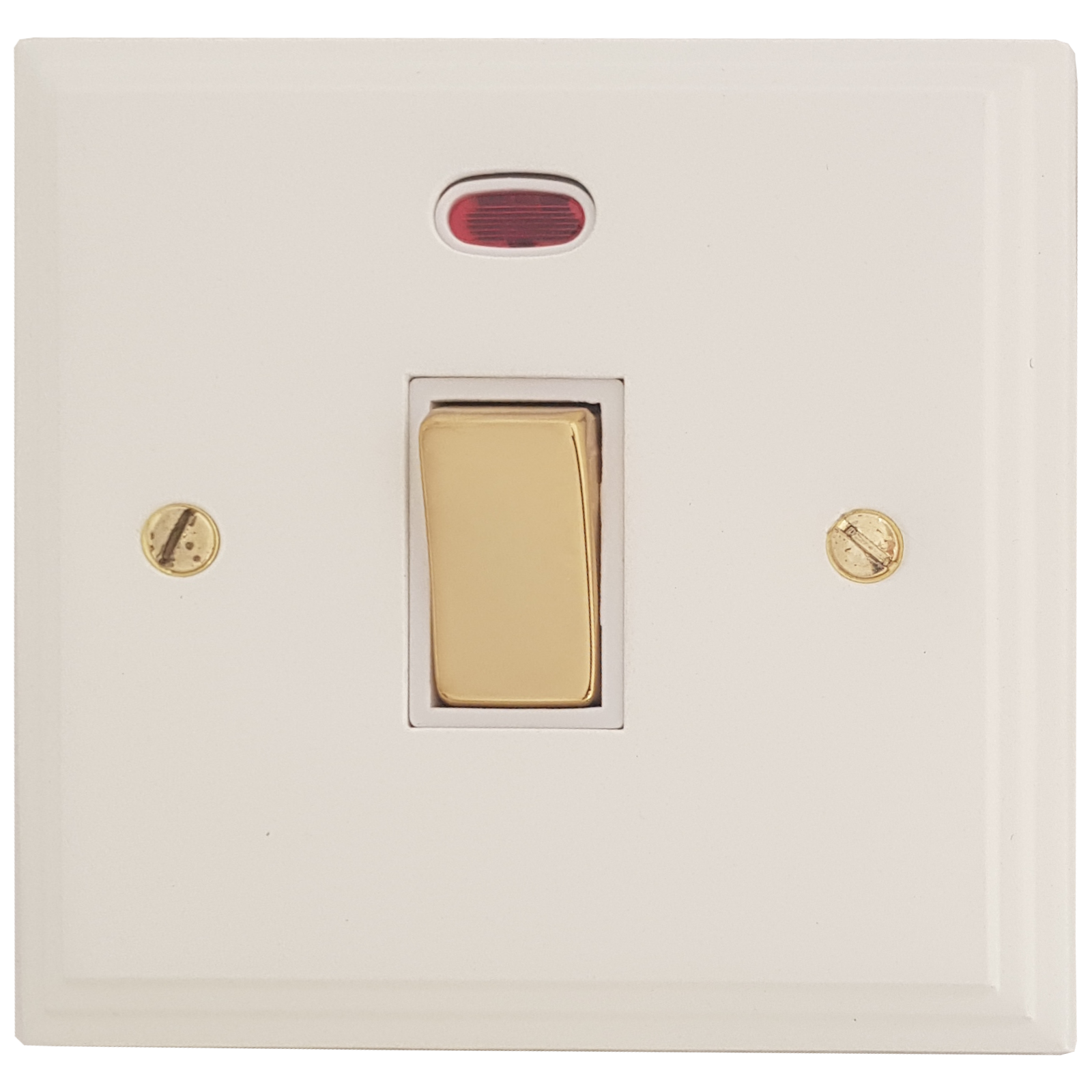 White 20A DP Switch with Neon (White insert/Polished Brass Switch) - G+H VW226-PB