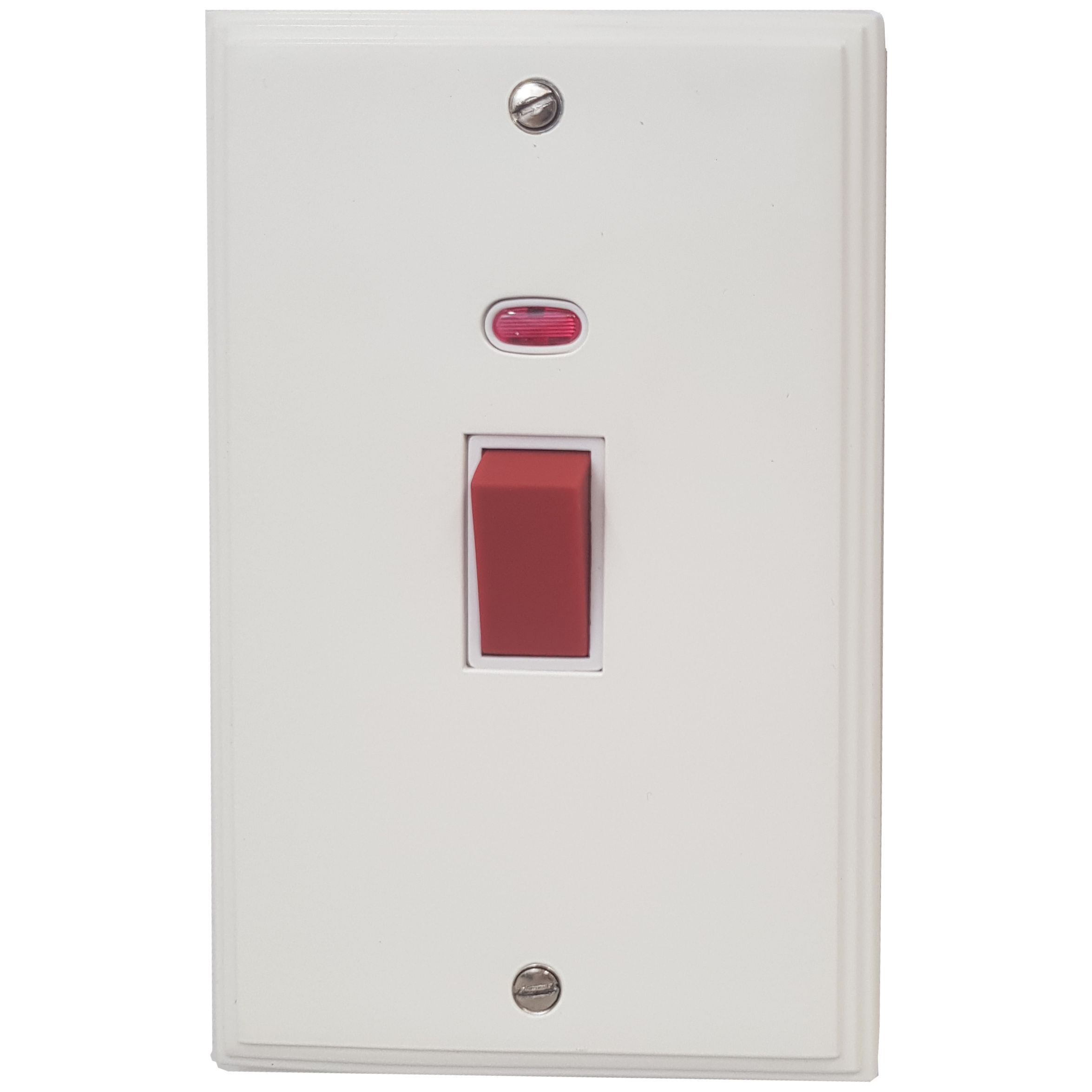 White 45A DP Switch with Neon (Vertical Plate) - G+H VW28W
