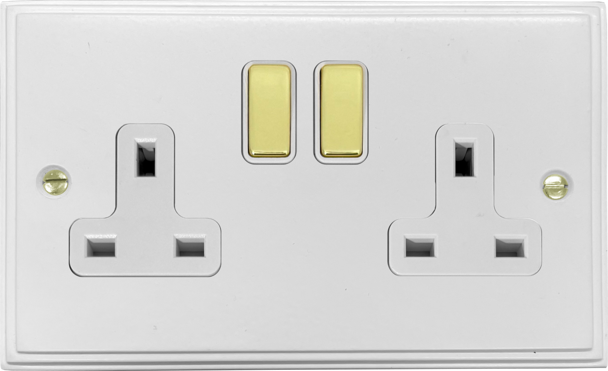 White Double Socket (White Insert/Polished Brass Switches) - G+H VW210-PB