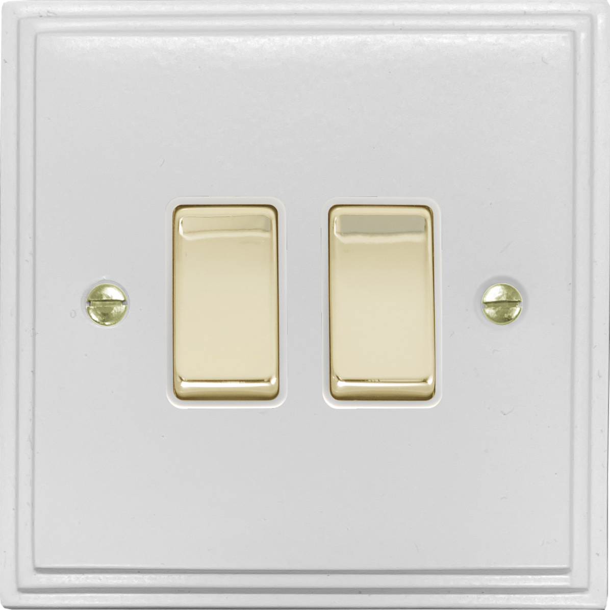 White Light Switch (2 Gang/White Insert/Polished Brass Switches) - G+H VW202-PB