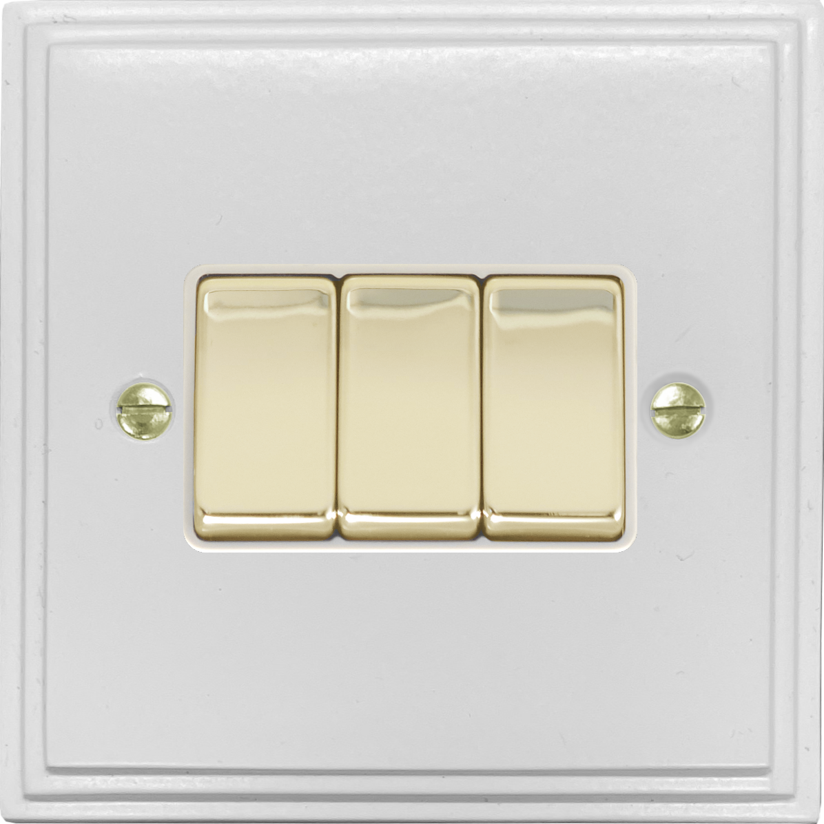 White Light Switch (3 Gang/White Insert/Polished Brass Switches) - G+H VW203-PB