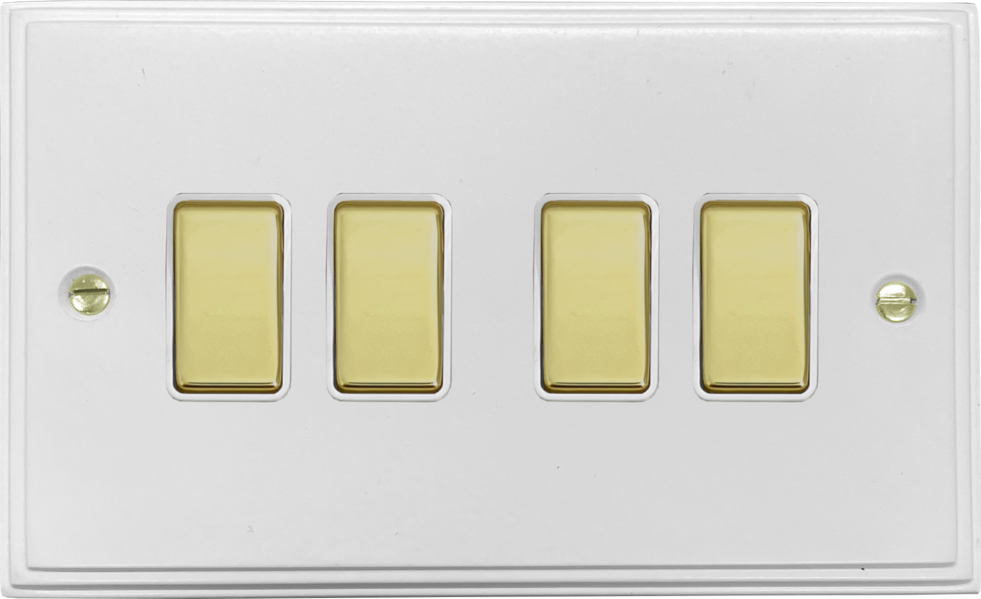 White Light Switch (4 Gang/White Insert/Polished Brass Switches) - G+H VW204-PB
