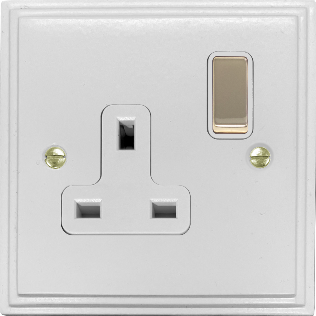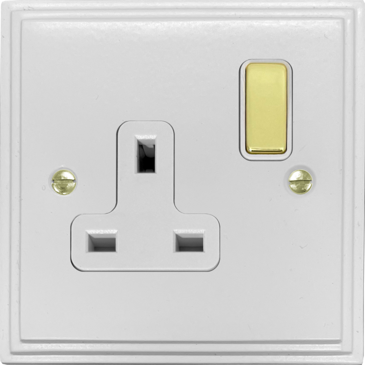 White Single Socket (White Insert/Polished Brass Switch) - G+H VW209-PB