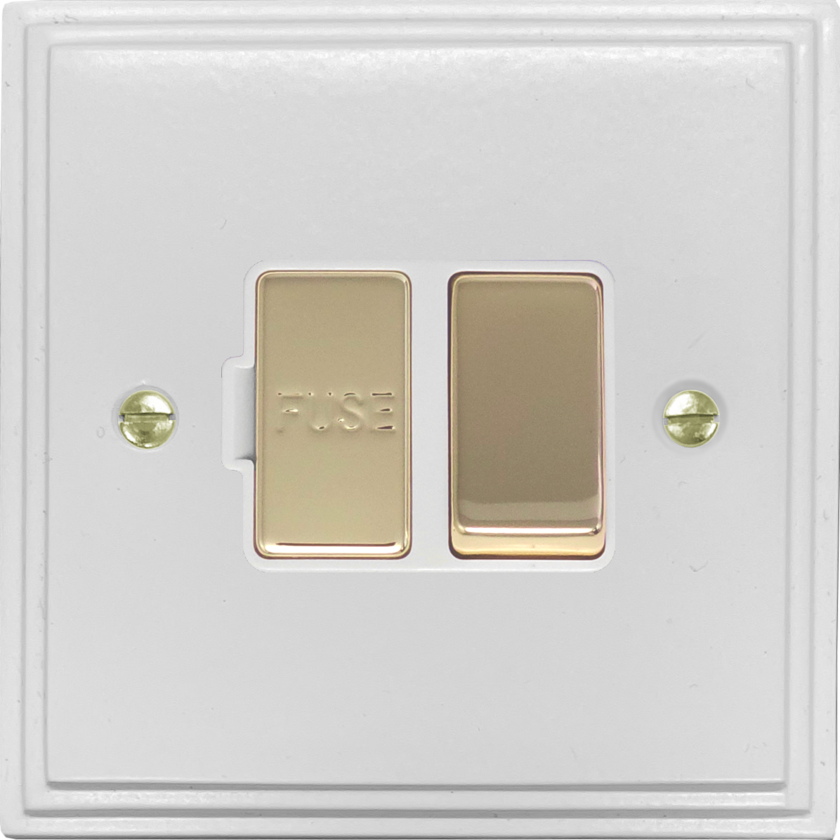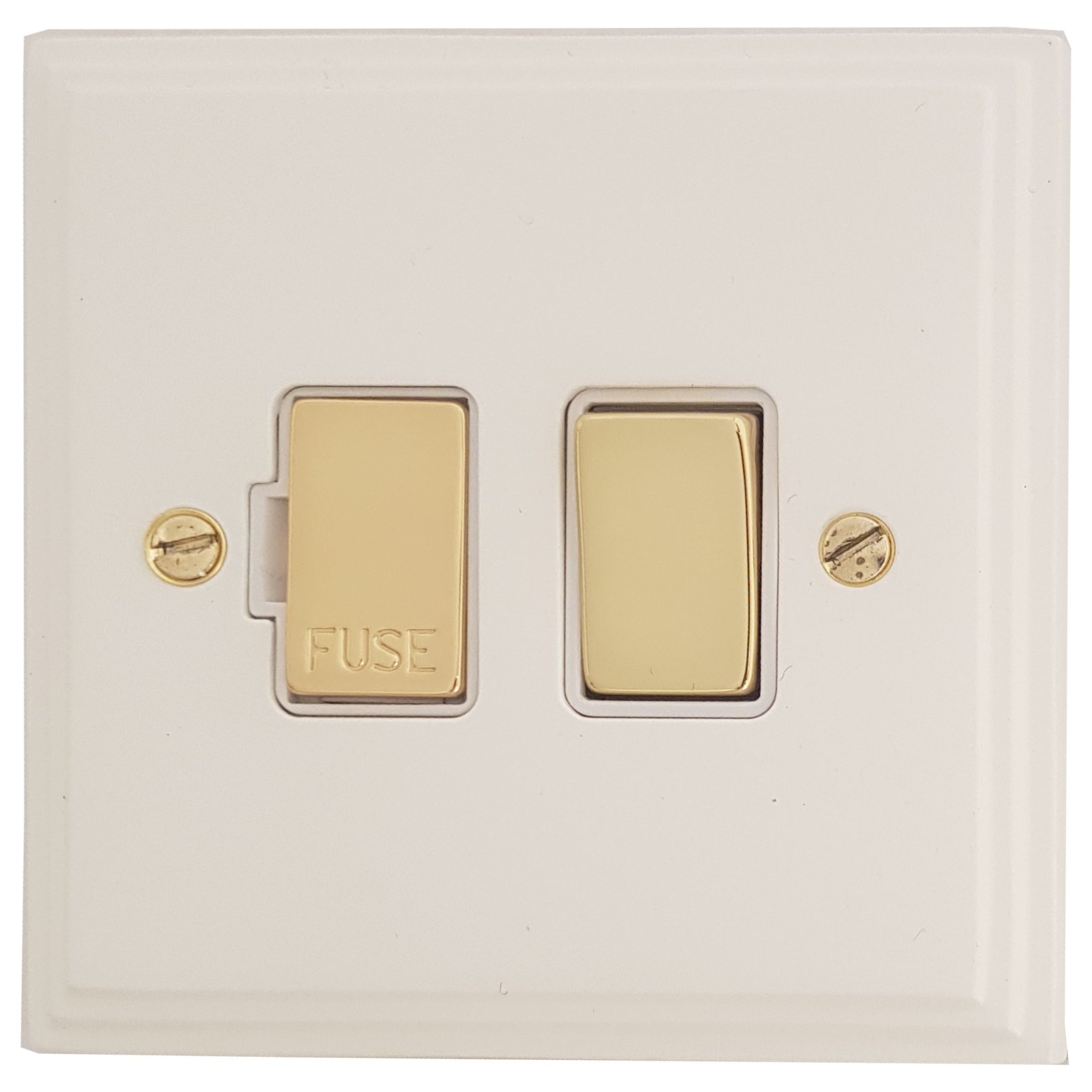 White Switched Fused Spur (White insert/Polished Brass Switch) - G+H VW257-PB