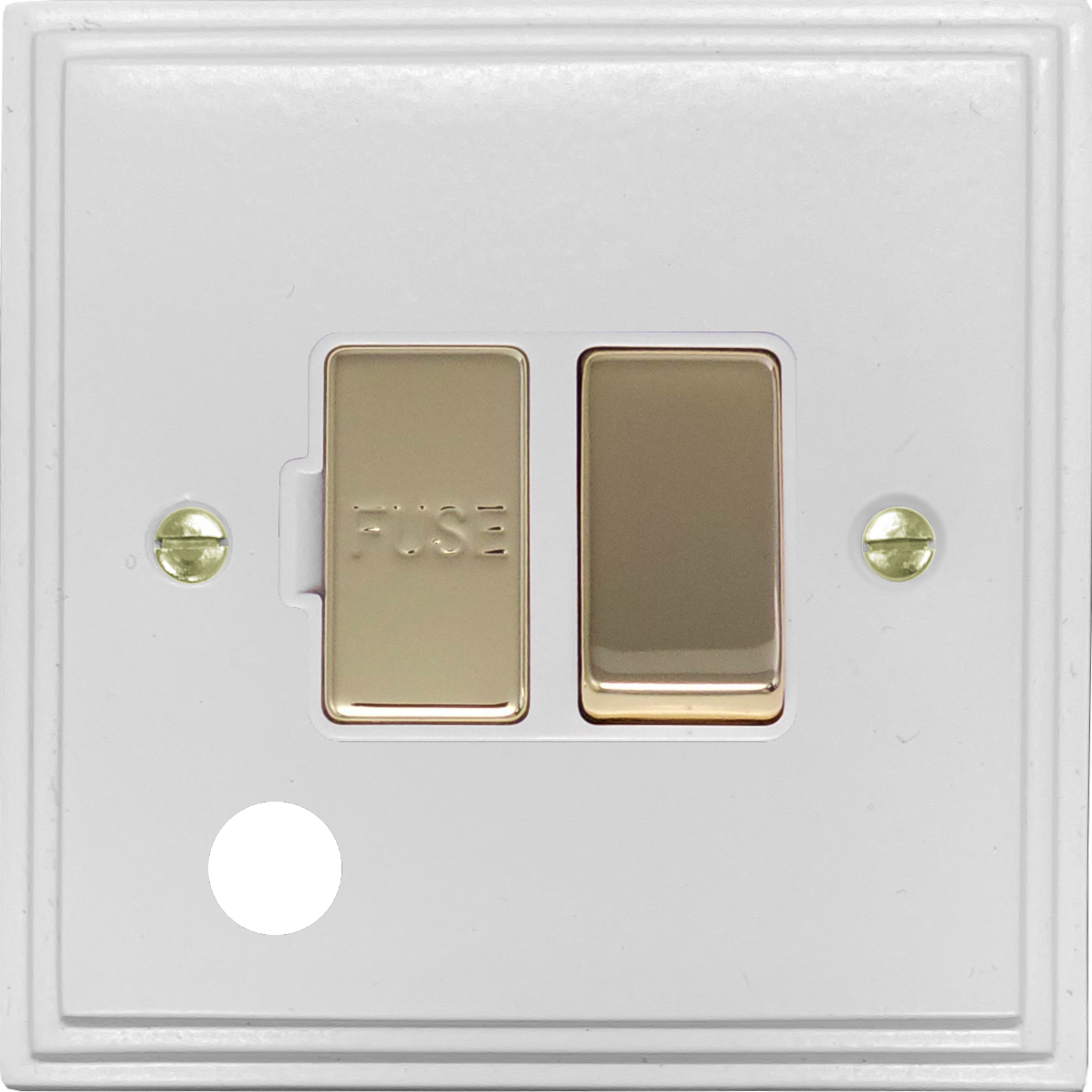 White Switched Fused Spur with Flex Outlet (White Insert/Polished Brass Switch) - G+H VW256-PB