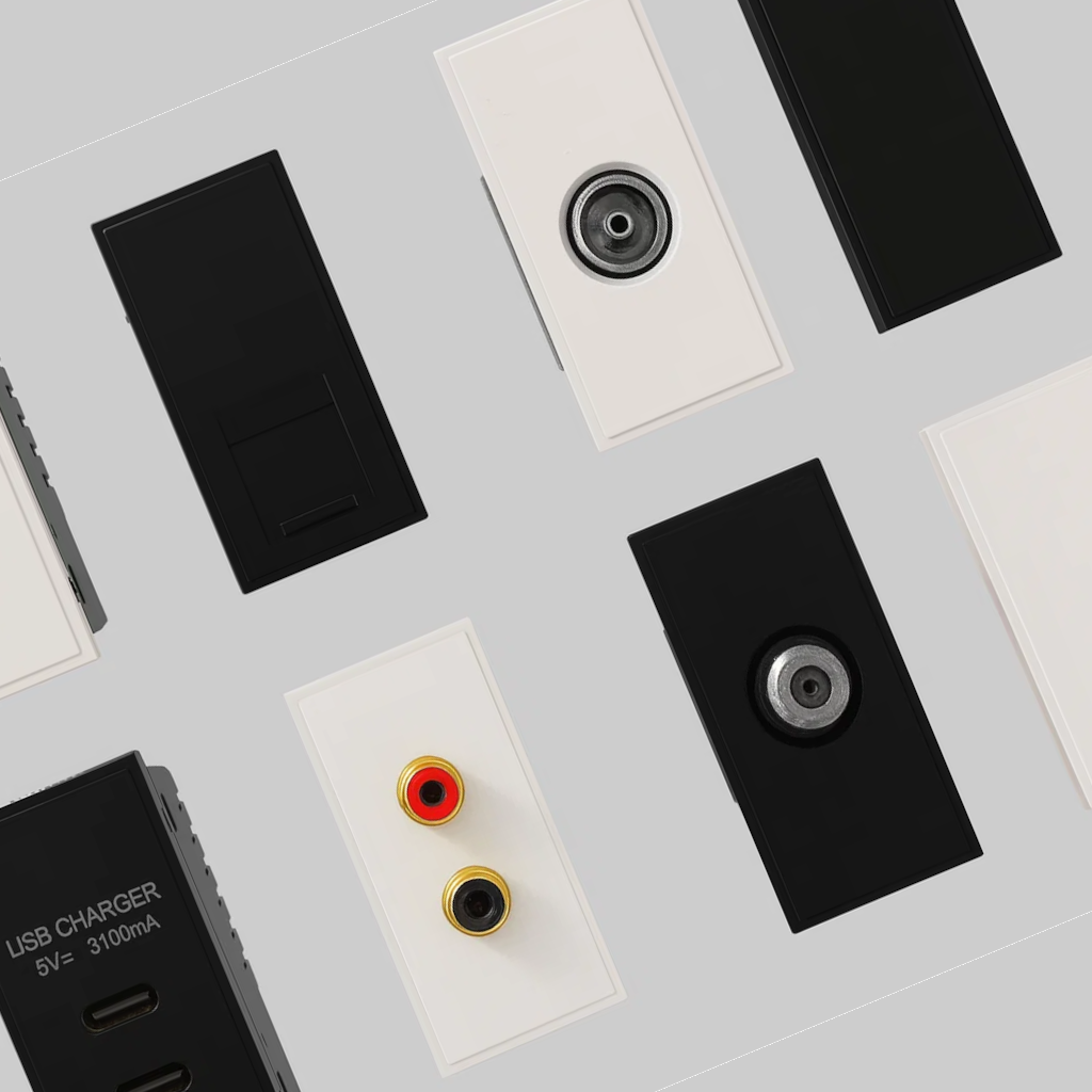 We have RJ45, TV, telephone, brush modules and more so you can make up your perfect plate.