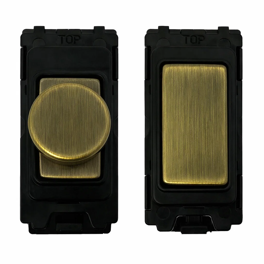 G&H Electrical Grid Switch Intelligent Antique Brass and Black Dimmer