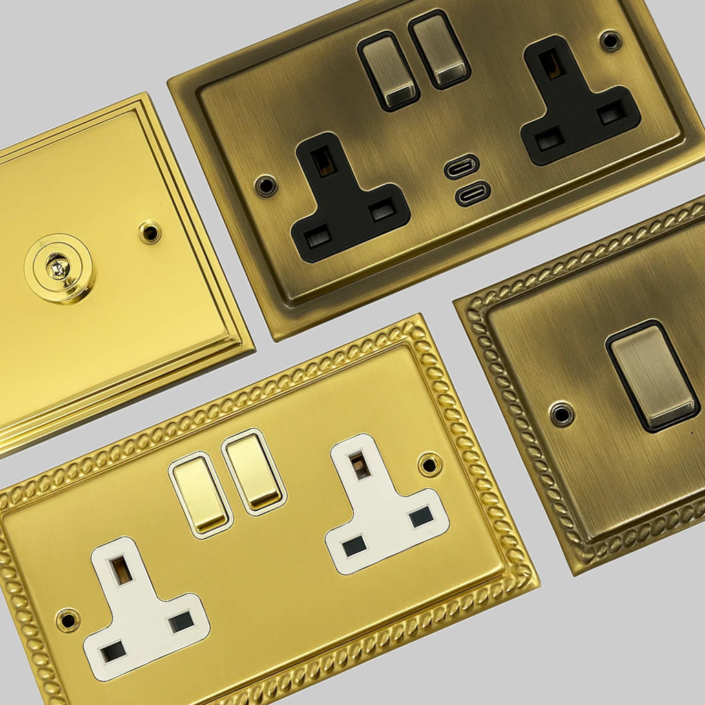 Brass sockets and switches have always been one of our most popular finishes, and unlike many manufacturers, our brass plates are made from either cast or pressed brass, and then finished with the chosen brass finish. Within these ranges we also have brass rocker switches, as well as black plastic or white plastic rocker switches, giving you a wide choice of finishes and designs.